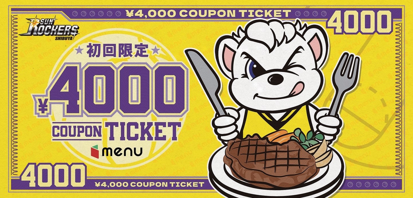 ◇サンロッカーズ渋谷オリジナル「初回限定menu4,000円クーポンチケット」をプレゼント