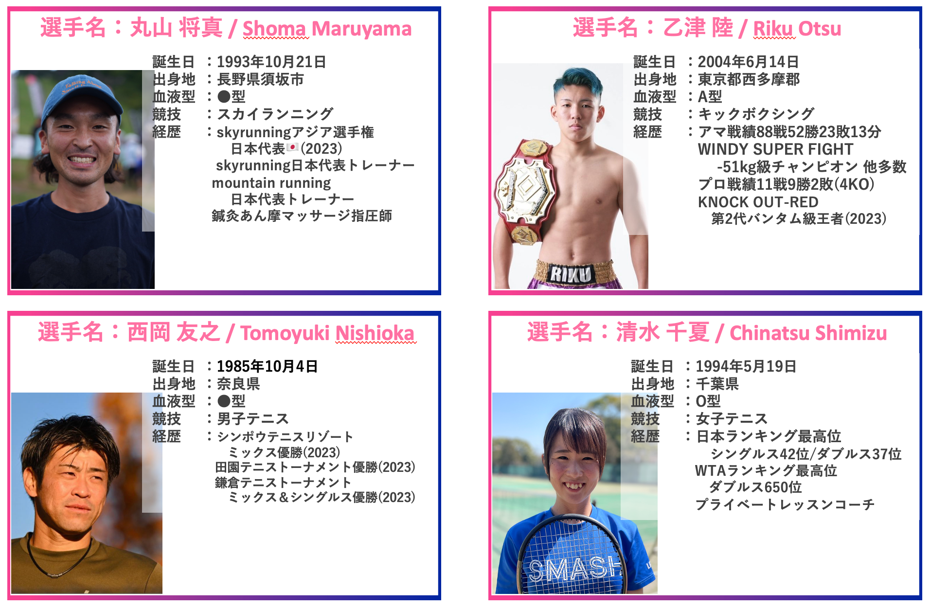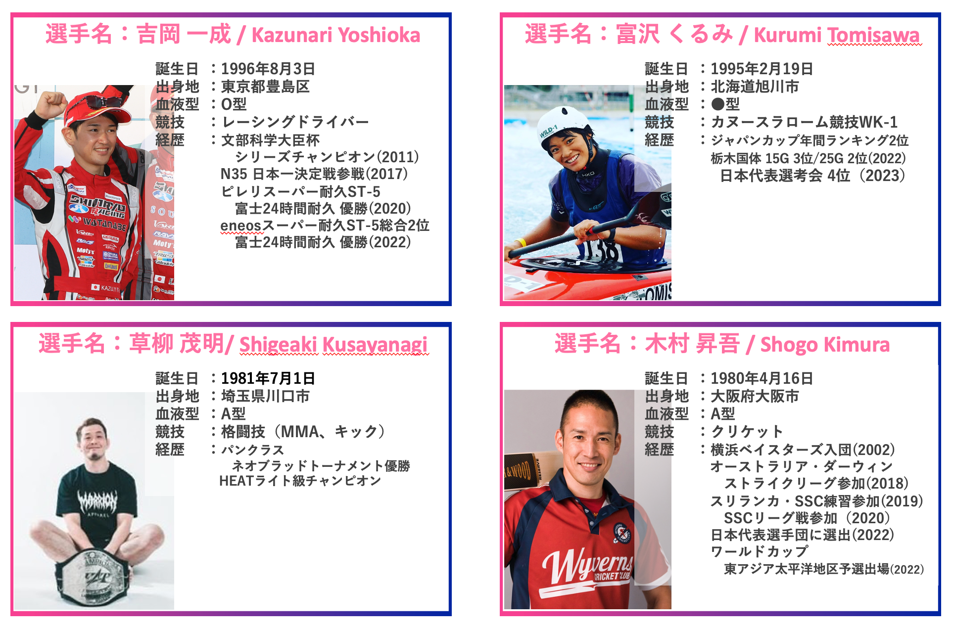 企業様にはアスリートリストを別途ご用意しています。詳しくはお問い合わせください。