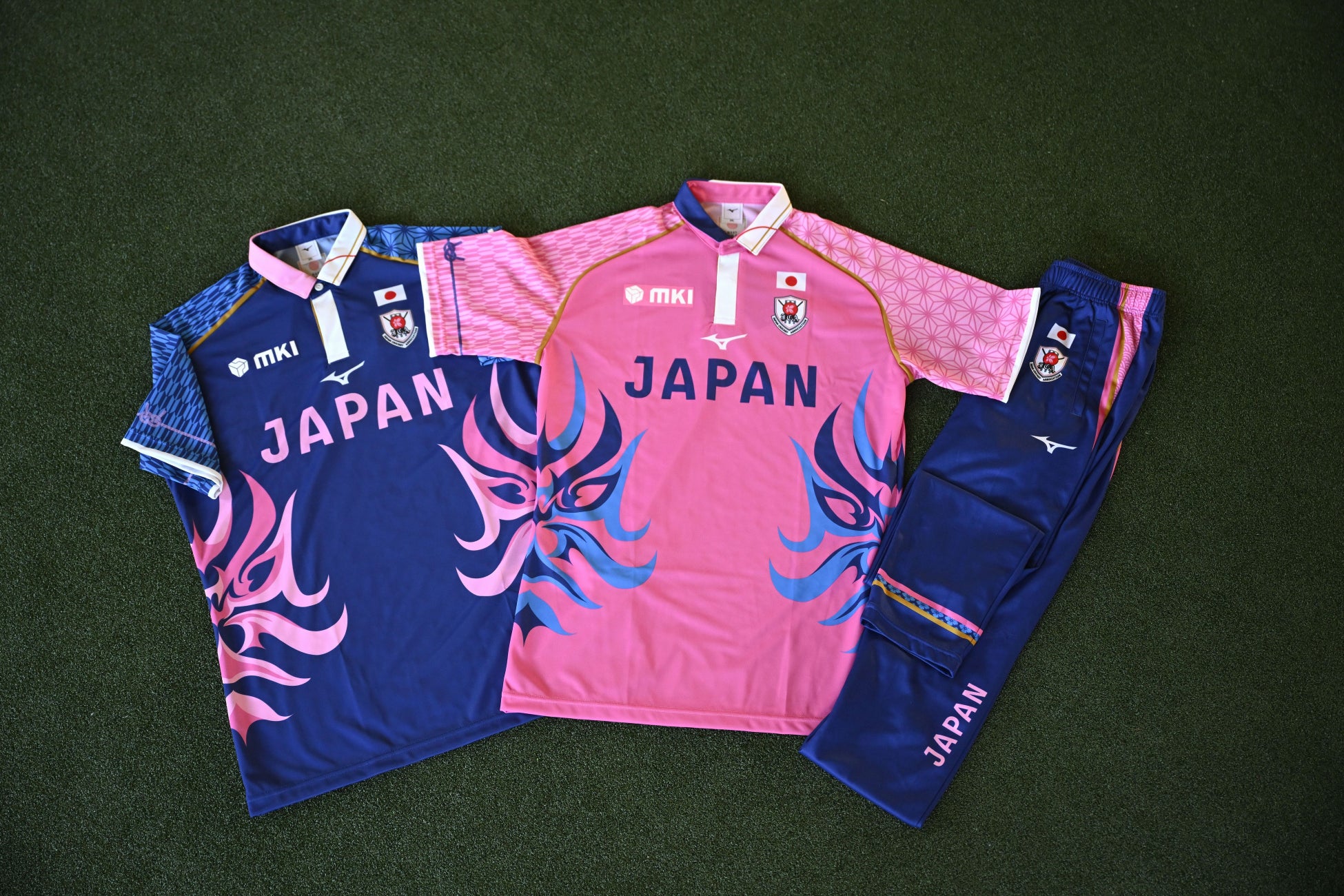 日本のクリケットを国内外にアピールするため、日本の伝統色である藍色をイメージしたブルーと桜をイメージしたピンクを基調とし、随所に和柄を取り込んだデザインとなっています。