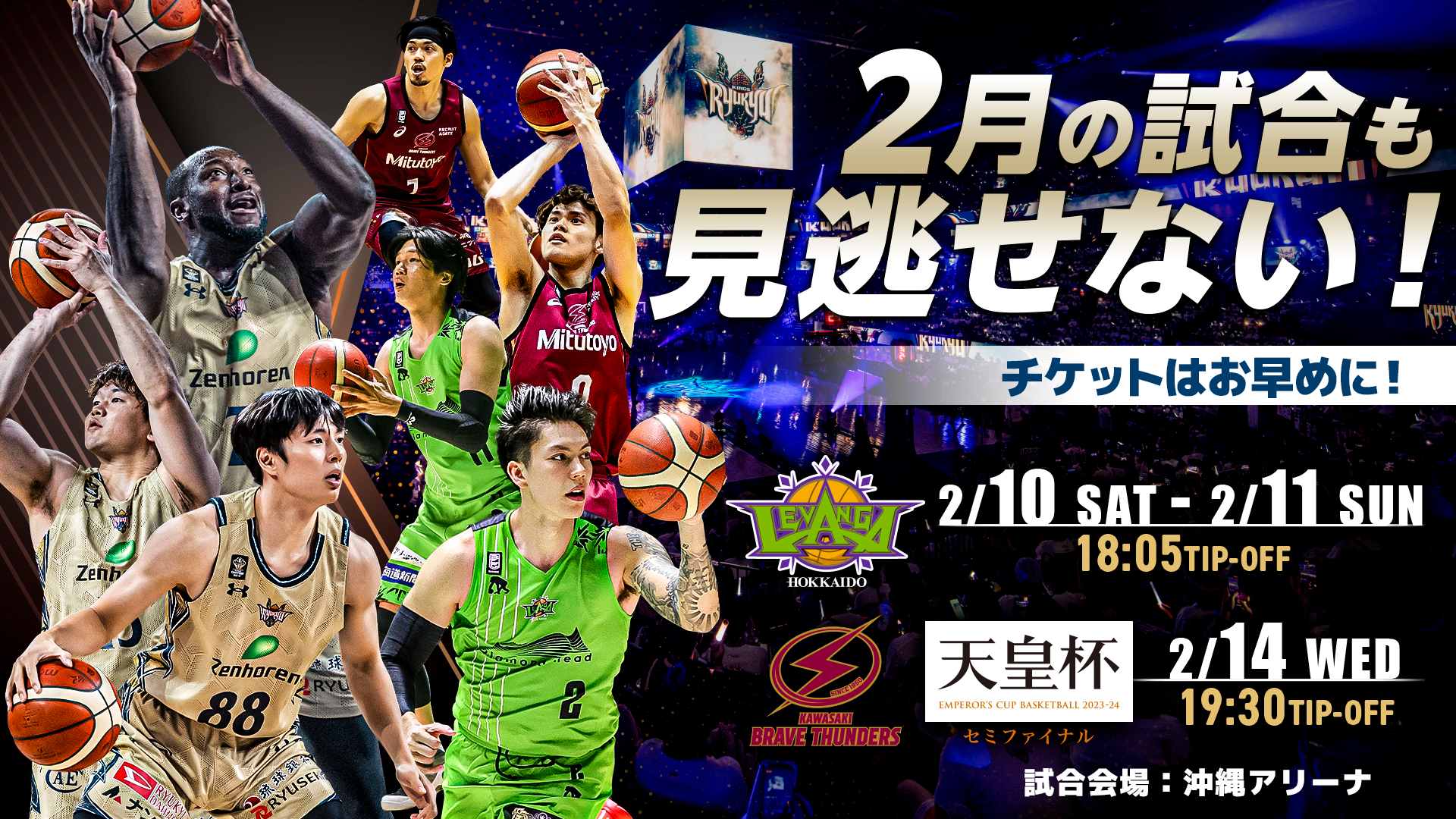 昨シーズンは、沖縄県勢初のファイナルに進出するも、惜しくも準優勝で終えた天皇杯。今年のセミファイナルの対戦相手は、これまで天皇杯5回の優勝を誇る川崎ブレイブサンダース。攻守のバランスが良く、総合力の高いチームです。豊富な運動量と得点力が武器の#0藤井祐眞選手や、ゴール下のみならず外角からも得点が取れる#25 ロスコ・アレン選手がチームを牽引します。ホーム沖縄アリーナで、セミファイナルをチーム一丸で戦い、再びファイナルの舞台へ挑戦できるよう挑みます。