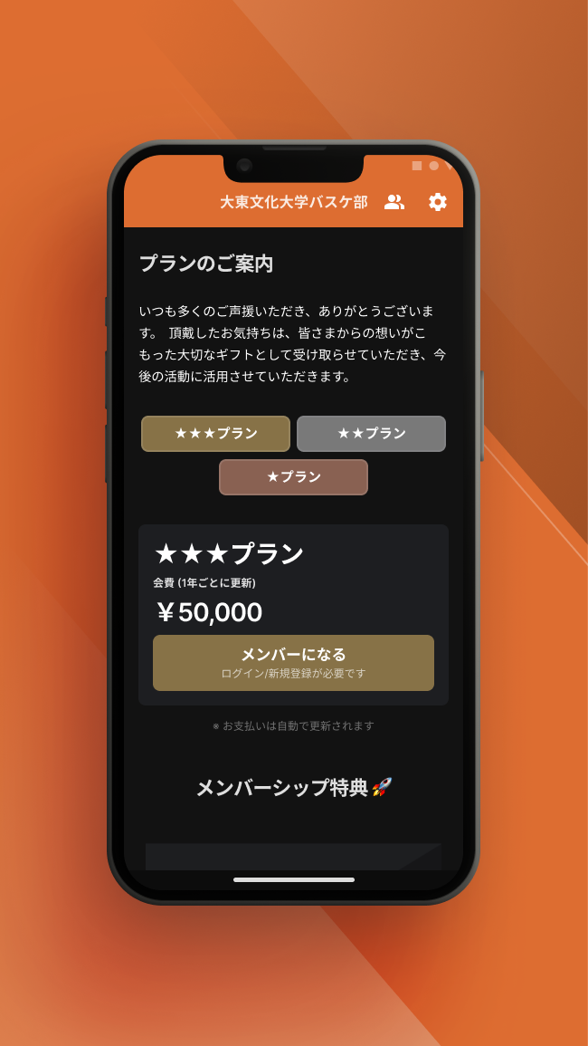 バスケットボールの発展に伴って、全国から夢や目標を追い求めて多くの選手が大東文化大学男子バスケットボール部でプレーしてきました。それと同時に多くのOB・OG・保護者・ファンの皆様に身近なチームとなりました。いつまでも大東文化大学男子バスケットボール部を身近に感じてもらい、アプリを通じて気軽に交流を図りたい思いから今回の導入に至りました。大東文化大学男子バスケットボール部を通じて世代を超えた触れ合いの輪を広げ、いつまでも大東文化大学男子バスケットボール部を楽しんでもらいたいと思います!