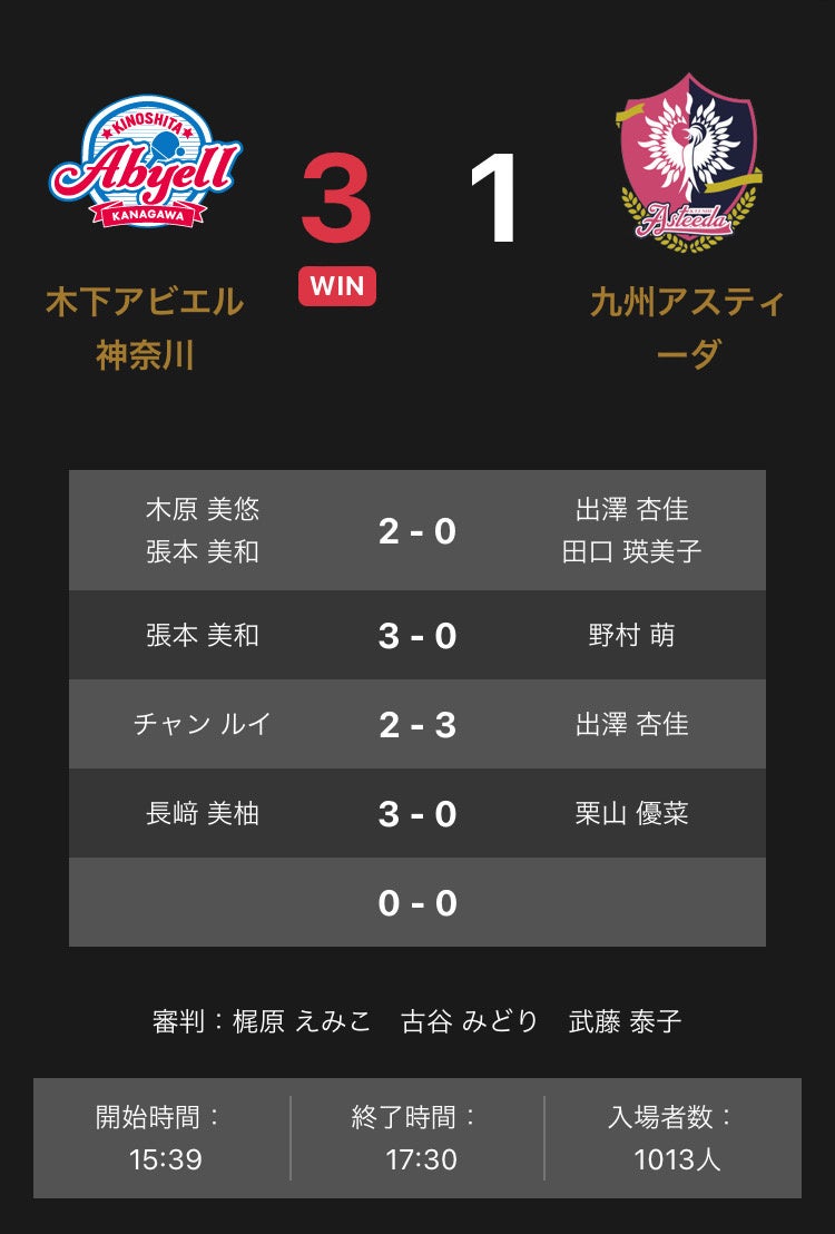 ホームプレスリリース ノジマ リーグ 2023-2024シーズン 公式戦 2月4日開催 木下アビエル神奈川 vs 九州アスティーダ 試合結果 2024年02月04日 18時00分 公開|スポーツマニア編集部プレスリリース 一般社団法人Tリーグのプレスリリース ノジマ リーグ 2023-2024シーズン 公式戦 2月4日開催 木下アビエル神奈川 vs 九州アスティーダは、3-1で木下アビエル神奈川が勝利しました。