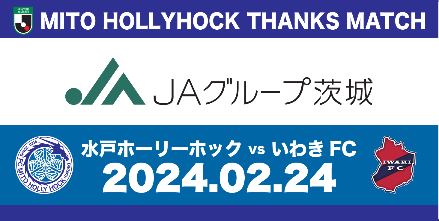 このたび、2月24日(土)開催の2024明治安田J2リーグ第1節 水戸ホーリーホック vs. いわきFCをJAグループ茨城にご支援いただき『JAグループ茨城サンクスマッチ』として開催いたします。