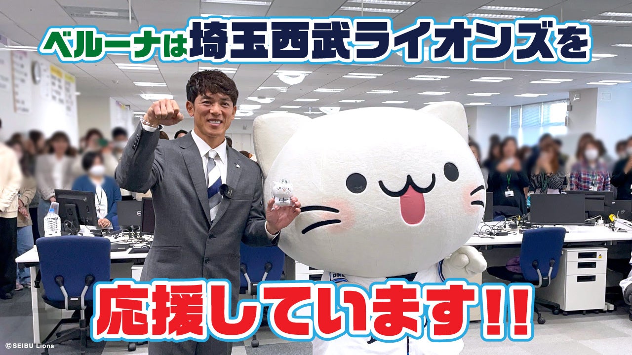 ベルーナは、埼玉西武ライオンズと同じ埼玉県に本社を構え、2015年よりライオンズのオフィシャルスポンサー契約を締結しています。さらに2022年3月1日より施設命名権(ネーミングライツ)スポンサー契約を締結。両社共同で企画したイベントの実施や公式キャラクター「べるーにゃ」とライオンズのコラボグッズ制作等を通じて、ライオンズを精力的に応援しています。