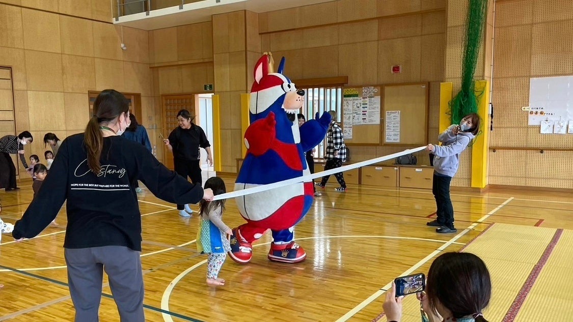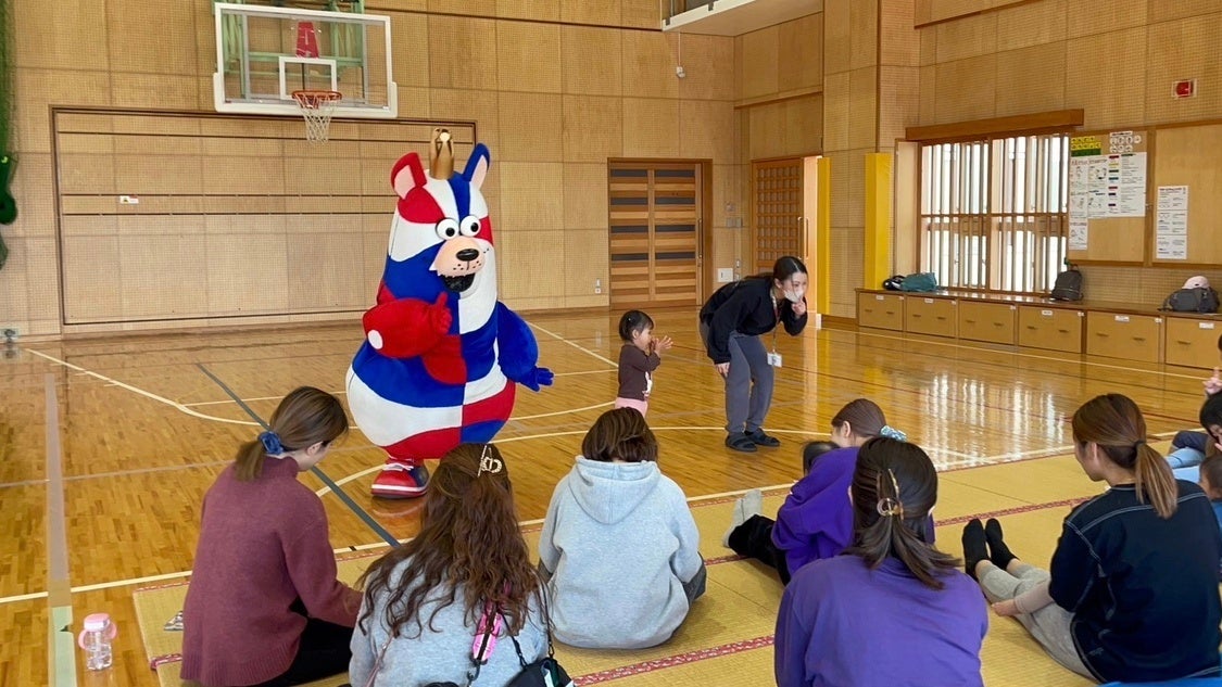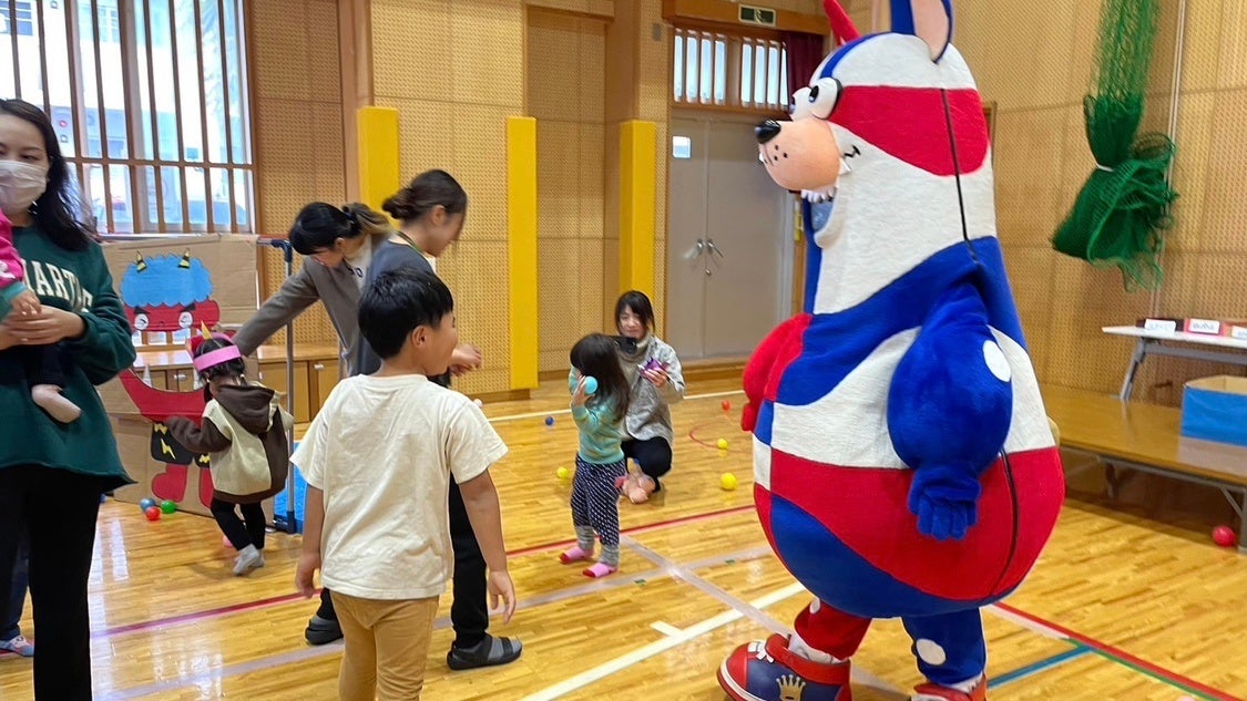 1月23日(火)に行われた「節分制作&豆まき」では、ゴーディーも一緒にボールを使って鬼に向けてボールを投げて豆まきごっこをしたり、2月6日(火)には「運動あそび」で幼児と一緒にかけっこしたり、読み聞かせや手あそび、写真撮影など行い楽しく交流をしました。