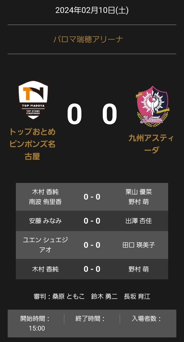 ホームプレスリリース ノジマTリーグ 2023-2024シーズン 公式戦 2月10日開催 トップおとめピンポンズ名古屋vs 九州アスティーダ 対戦オーダー発表 2024年02月10日 13時51分 公開|スポーツマニア編集部プレスリリース 一般社団法人Tリーグのプレスリリース ノジマTリーグ 2023-2024シーズン 公式戦 2月10日開催 パロマ瑞穂アリーナ トップおとめピンポンズ名古屋vs 九州アスティーダの対戦オーダーを発表いたします。