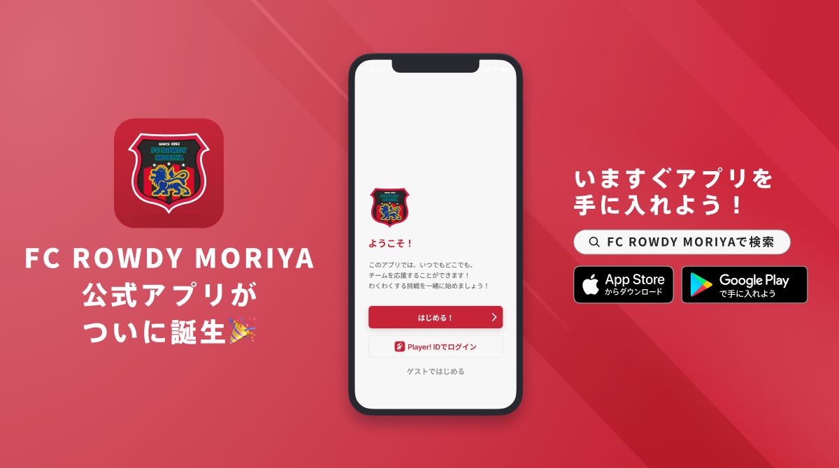 AppStoreもしくはGooglePlayで「FC ROWDY MORIYA」と検索!