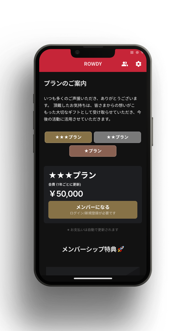 我々のビジョン「smallhappiness」とは小さな幸せをROWDYに関わる全ての方に与えたい、こう言った思いをこの場でも与えれるのではないか。 現代ではコミュニティの希薄化が問題視されており、老人の方から子供達へ、そう言った場を試合やイベントを通してお繋ぎしながら、お互いが感謝の気持ちを、そしてそこに小さな幸せを呼び起こし、いつかは大きな大きな幸せに! その一歩を踏み出す為の手段としてこちらのアプリを導入致しました。