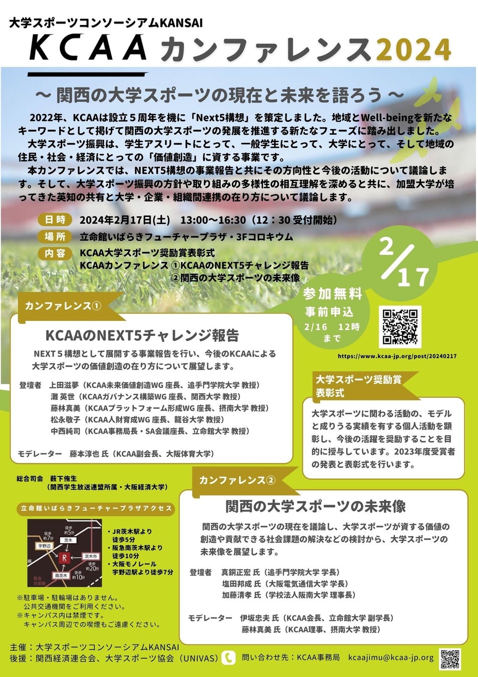 【問い合わせ先】 一般社団法人大学スポーツコンソーシアムKANSAI(KCAA)事務局
