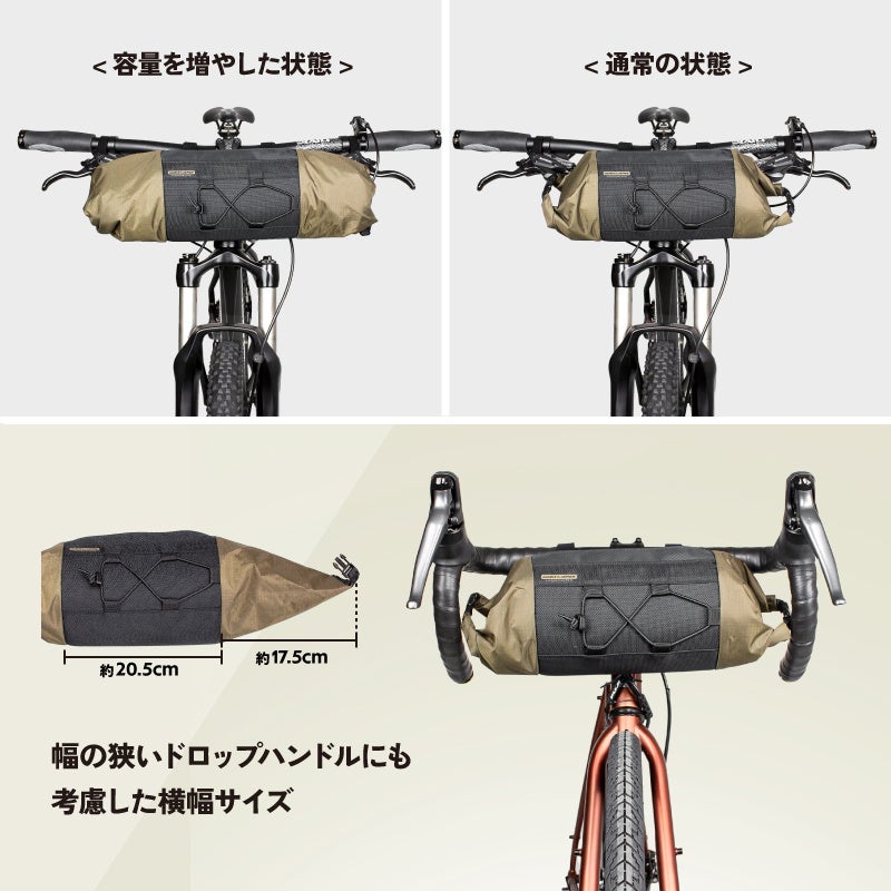 長さ約22-55cm、直径約12cm(円柱状)、ベルクロストラップ長さ24cm