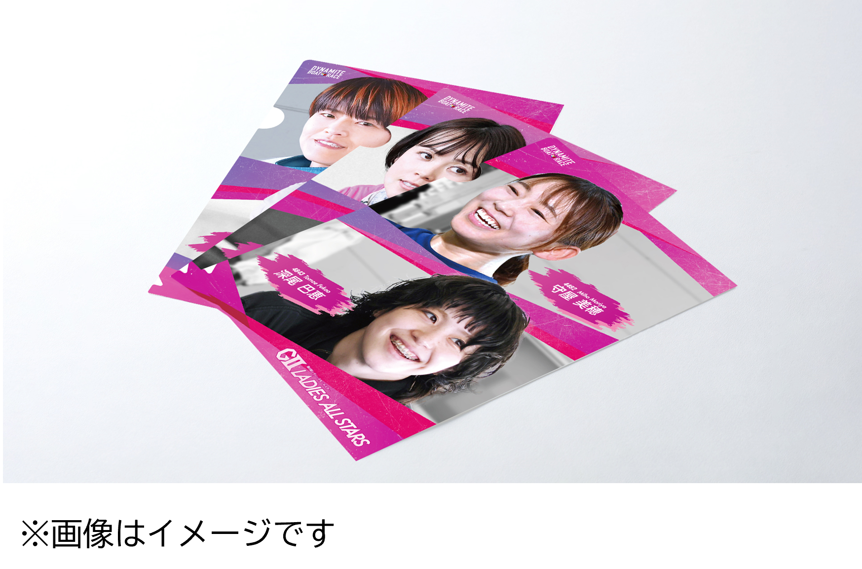 レース開催期間中、ボートレースびわこにご来場いただいた方に先着で、ファン投票上位12選手のお写真をあしらったオリジナルデザインのクリアファイルを配布いたします。どの選手のクリアファイルがもらえるかは当日のお楽しみ!