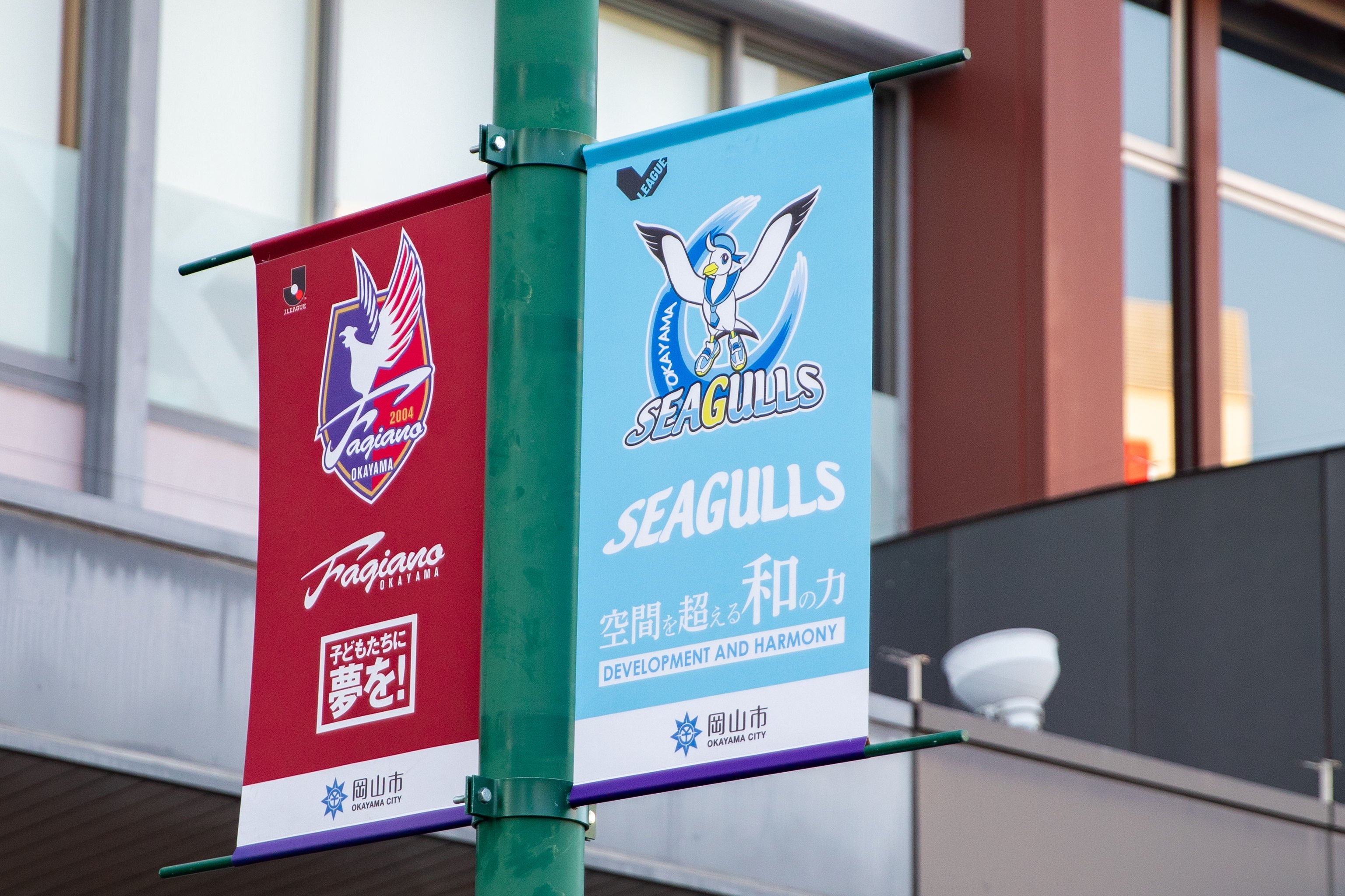 岡山市が実施するトップスポーツチーム応援企画として、フラッグ・看板が市内各所に設置