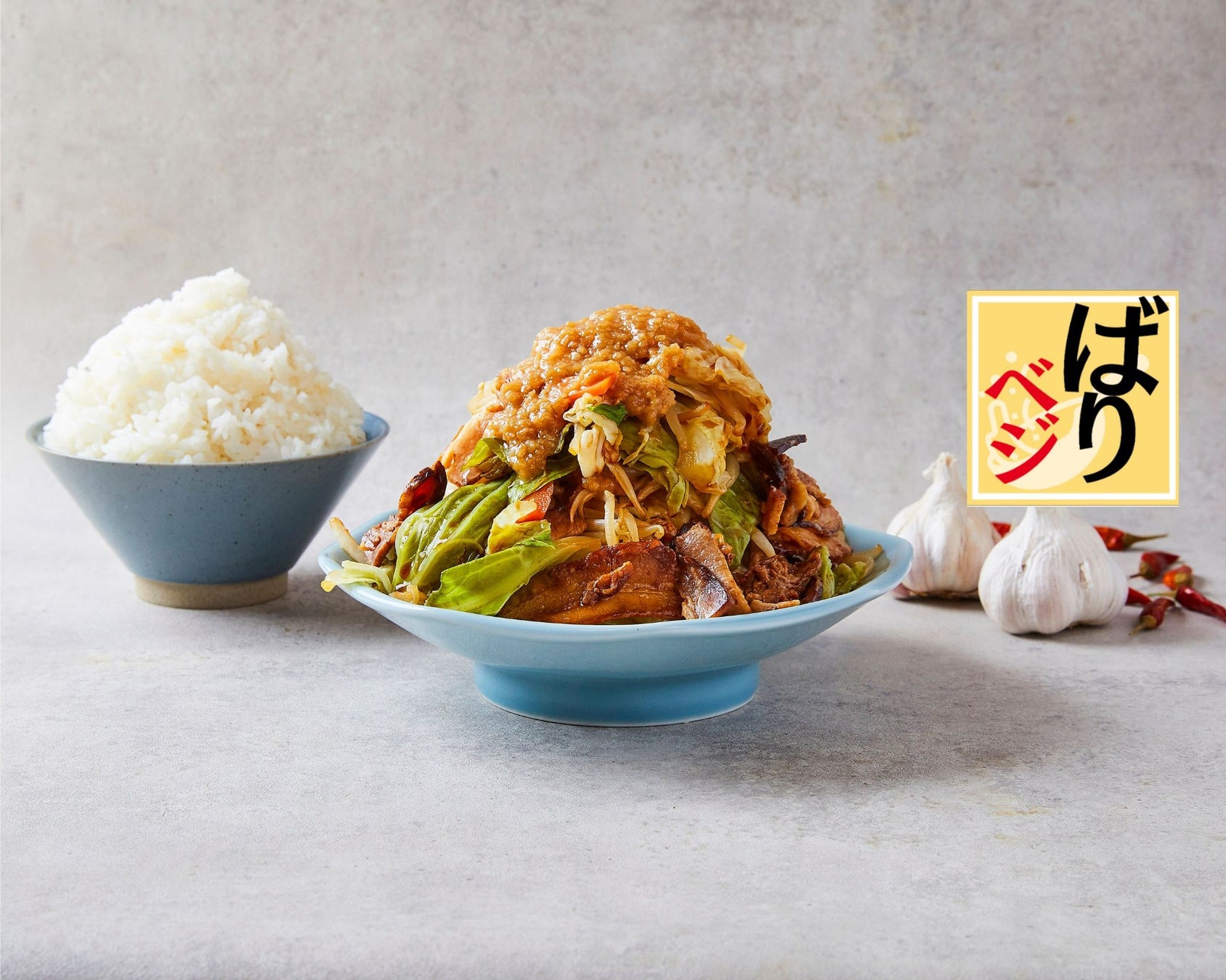 脅威の400g超え!!たっぷりの野菜とお肉をクセになるにんにく背脂で仕上げた新感覚肉野菜炒め。