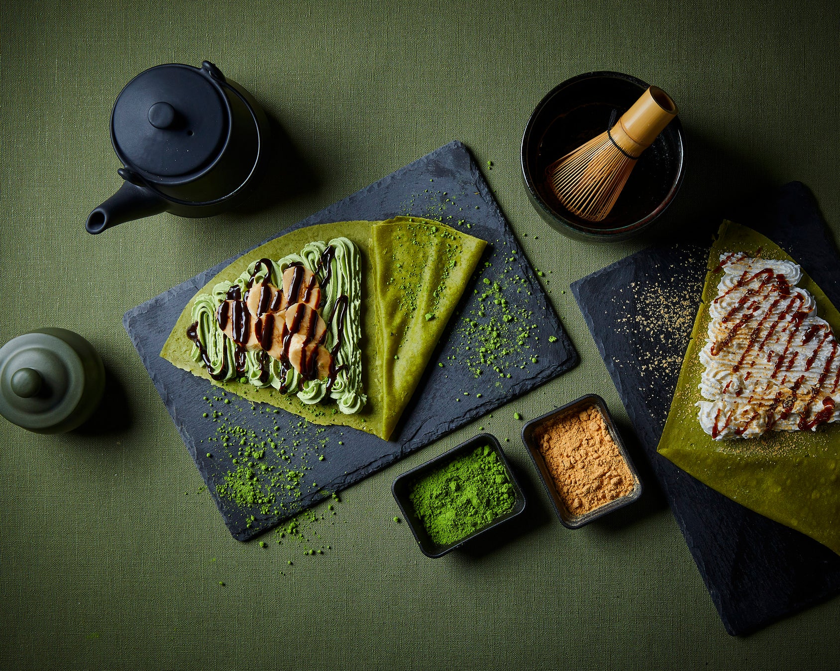 こだわりのクレープ生地には抹茶を練り込んでおり、香り豊かな風味が感じられます。濃厚抹茶クリームを贅沢に使用したトッピングメニューも用意しており、より一層抹茶の味わいがお楽しみいただけます。