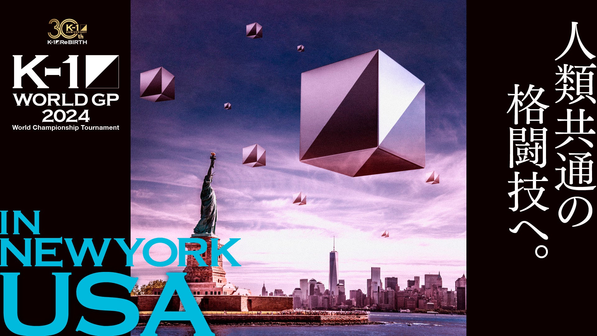 まずは5⽉19⽇、アメリカ、ニューヨークにて『K-1 WORLD GP2024 in New York北⽶ラウンド』を開催!会場は全世界が憧れるエンターテインメントの殿堂マジソンスクエアガーデン(サブアリーナ)で行い、全⽶から集いし未知なる8⼈の北⽶代表を⽬指し、鎬を削ることとなる。