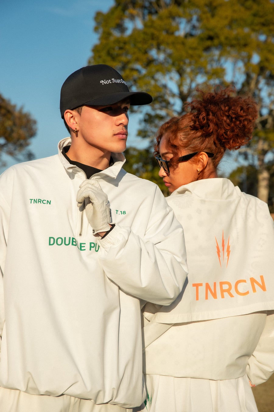 「TNRCN(タイニーリーコン)」は小型偵察機という意味で、ストリートからゴルフ場に忍び込むクルーをテーマに、ゴルフ場だけでなく、ゴルフ練習場や向かう道中、街中やトレーニングでも着れるコレクションラインです。
