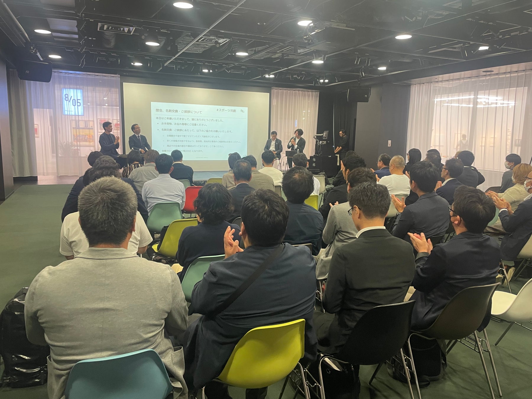 2023年10月17日には、「スポーツビジネス」の第一人者の原田宗彦氏(大阪体育大学学長、一般社団法人日本スポーツツーリズム推進機構会長) 、「組織横断・共創事業」の第一人者の野村恭彦氏(Slow Innovation株式会社 代表取締役社長)、世界初の対話式プラットフォーム「スポーツフューチャーセンター」によるまちづくりに取り組む佐賀県嬉野市長、村上大祐氏を招いた対話イベント「スポーツ共創の可能性とは」を開催いたしました。