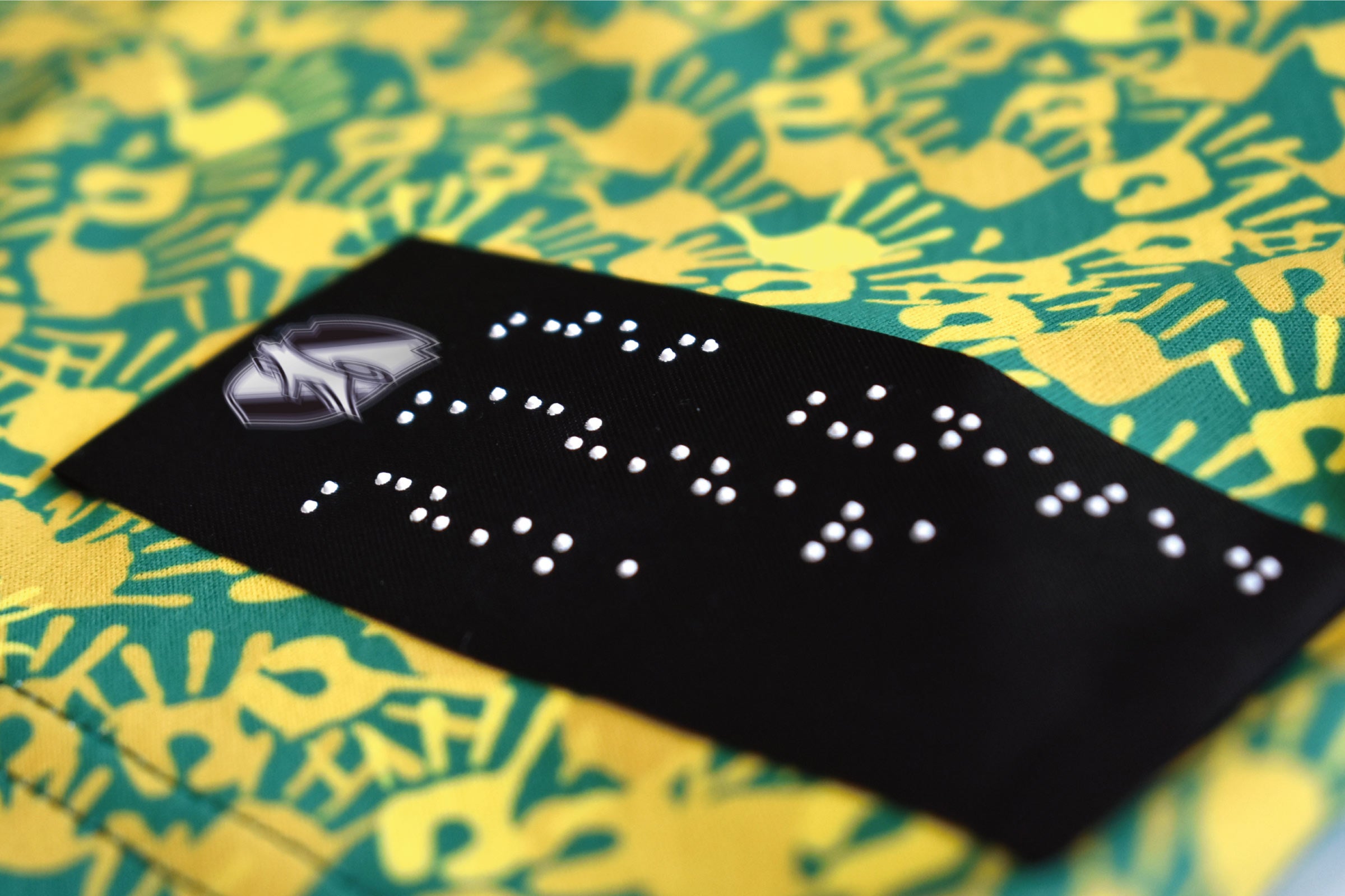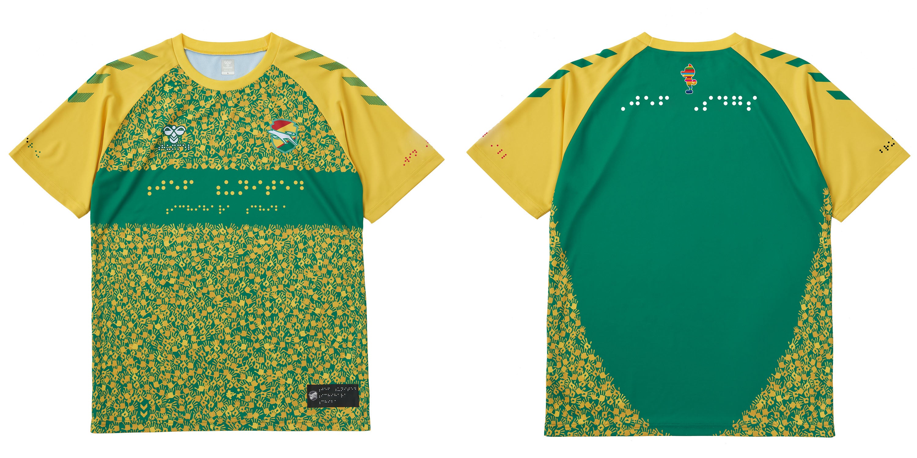 重なった手のひらが、千葉県の県花「菜の花」としてスタジアムに広がる様子をイメージし、シャツの裾部には、クラブ名を点字加工で施し、浮き出た文字を指先で触って読み取れるようにしています。