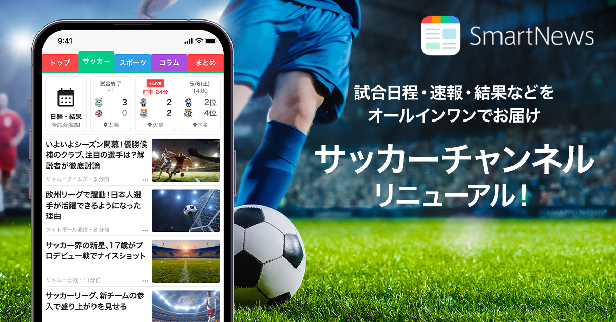 スマートニュース株式会社は、2月23日(金)のJリーグ開幕に合わせ、ニュースアプリSmartNewsに開設している「サッカーチャンネル」をリニューアルしました。