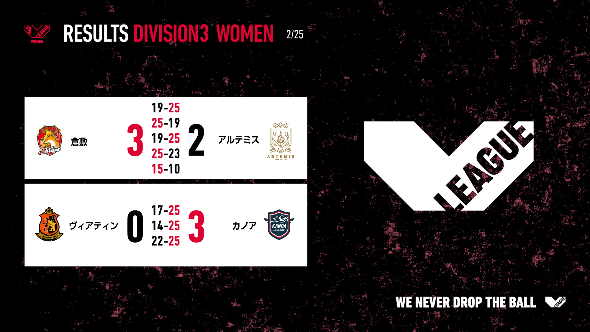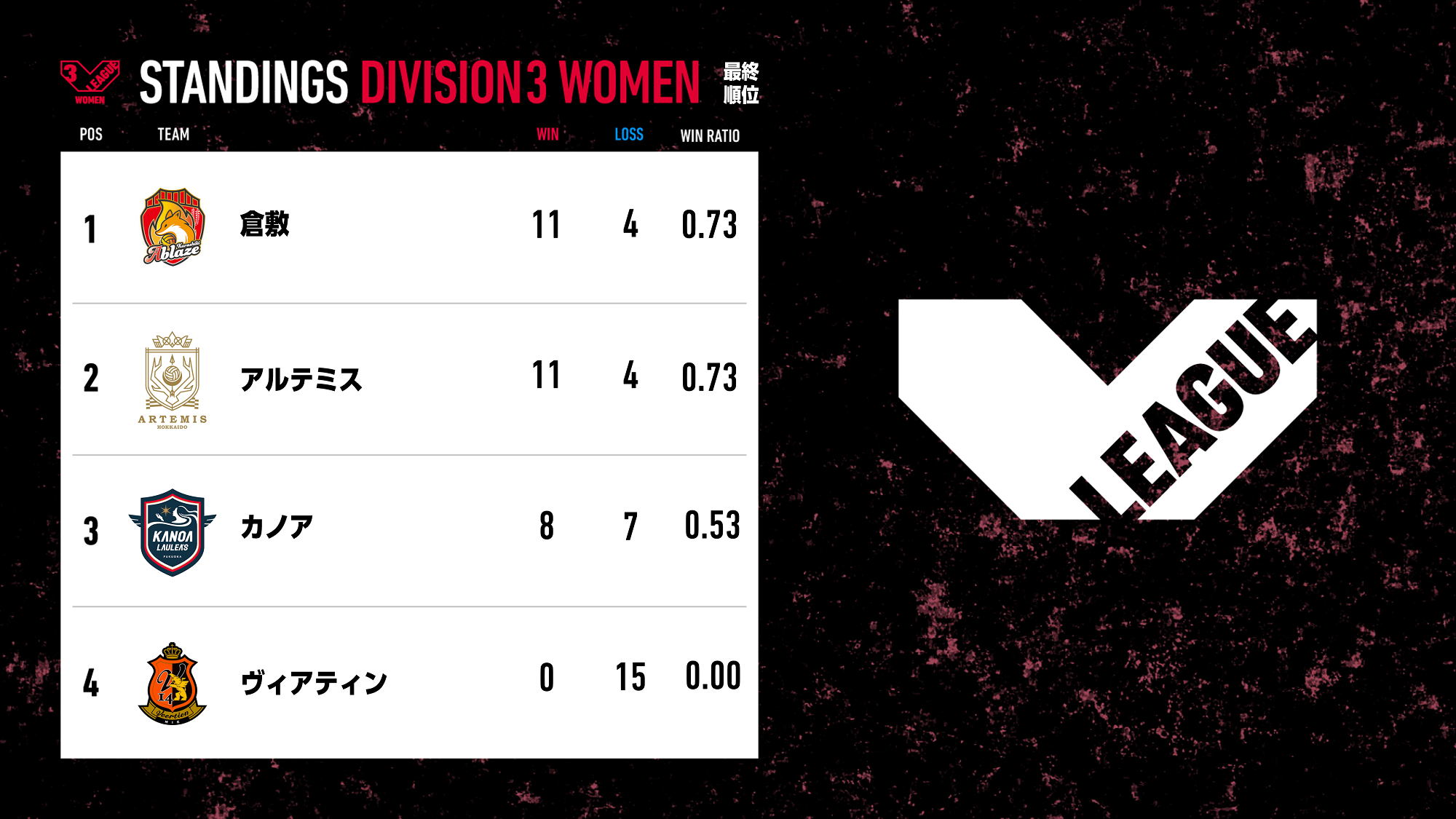 新設V3女子のトップに輝いた倉敷 写真は2月17日 対アルテミス戦
