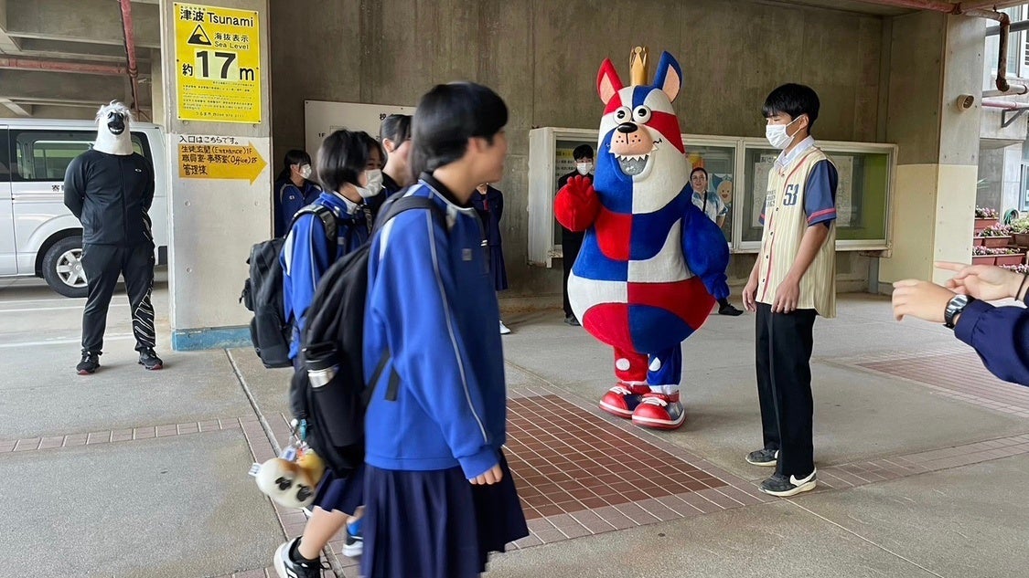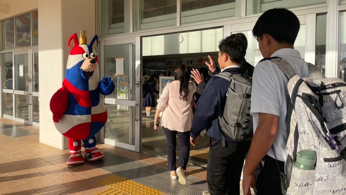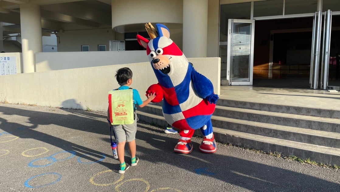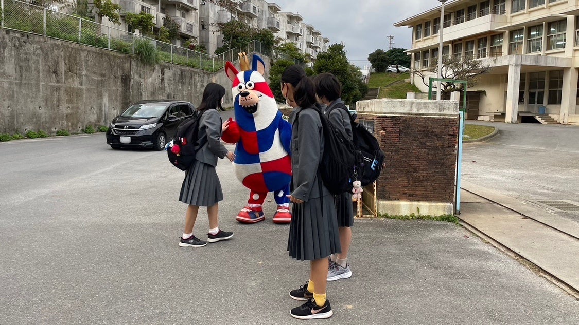 「おおきなわ」の活動の一環として行っている「ゴーディーによる朝のあいさつ運動」で、1月と2月はうるま市、嘉手納町、読谷村の小中学校(9校)にてあいさつ運動に参加しました。ご協力いただいた各小中学校の皆さま、ありがとうございました。