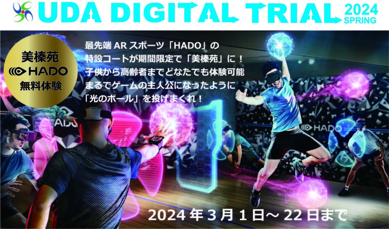 株式会社meleapは、子どもから高齢者までが最先端デジタル体験を受講できる「宇陀市デジタルトライアル2024SPRING」に協力し、「HADO」と「HADO モンスターバトル」の無料体験会、HADO全国大会「UDA CUP」を開催致します。