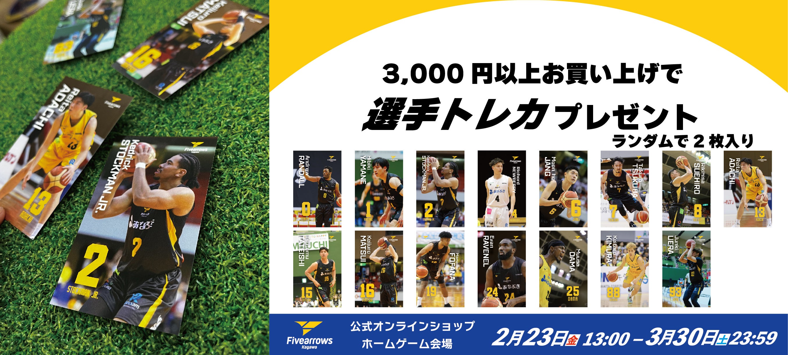 オンラインショップで開催している「3,000円お買い上げごとに選手トレカプレゼントキャンペーン」をホームゲーム会場にも拡大!