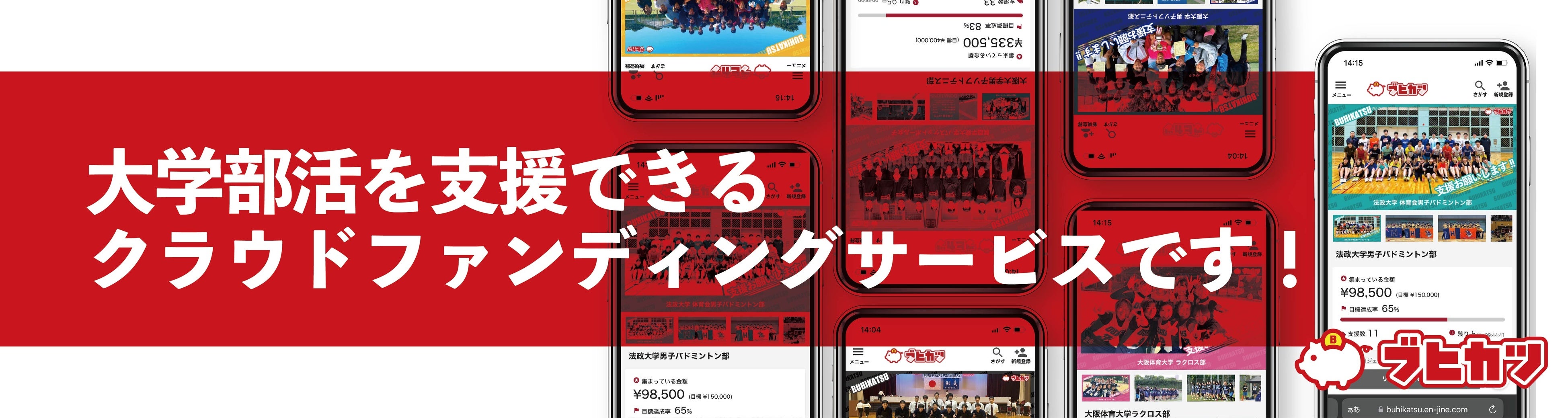 そのような大学部活の「資金不足」を多くの支援者からの「支援」で解決へ導くことができるサービスがブヒカツになります。ブヒカツを通して、大学部活が安心して部活動に取り組めるように尽力いたします。