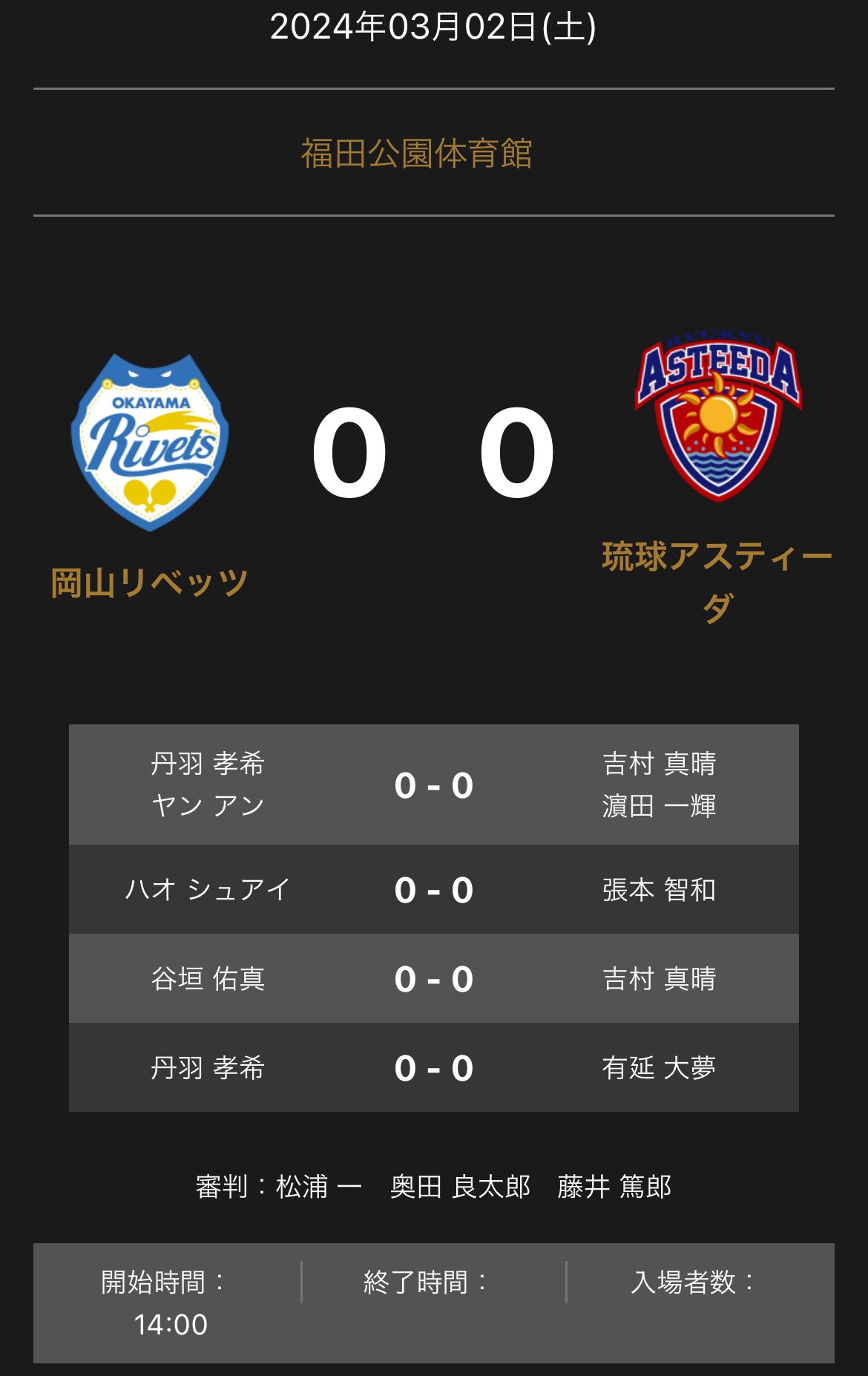 ホームプレスリリース ノジマTリーグ 2023-2024シーズン 公式戦 3月2日開催 岡山リベッツ vs 琉球アスティーダ オーダー発表 2024年03月02日 13時20分 公開|スポーツマニア編集部プレスリリース 一般社団法人Tリーグのプレスリリース ノジマTリーグ 2023-2024シーズン 公式戦 3月2日開催 岡山リベッツ vs 琉球アスティーダ のオーダーを発表いたします。