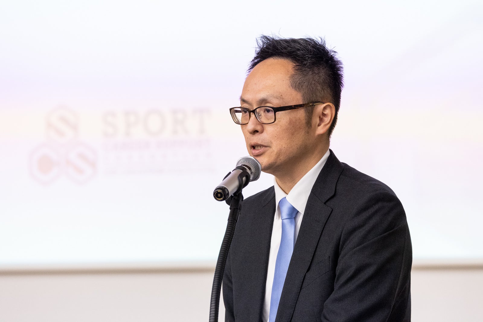 スポーツキャリアサポートコンソーシアム高橋義雄会長は開会の挨拶にて、「強化とキャリア支援」ということについて参加者へ伝えました。