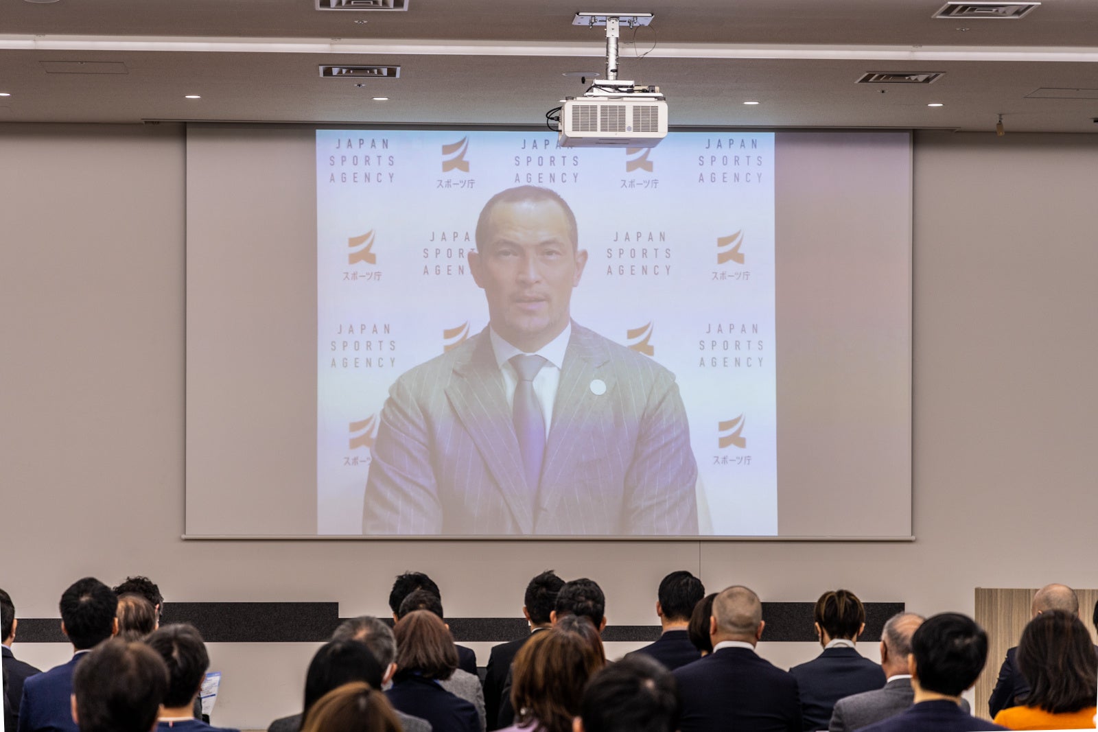 次にスポーツ庁室伏広治長官がビデオメッセージで「キャリア支援の輪が広がっている」ということを伝えました。