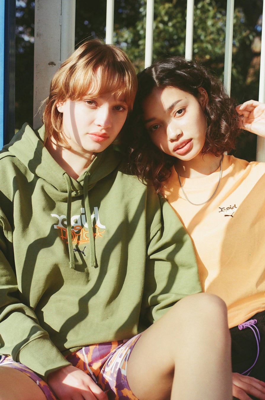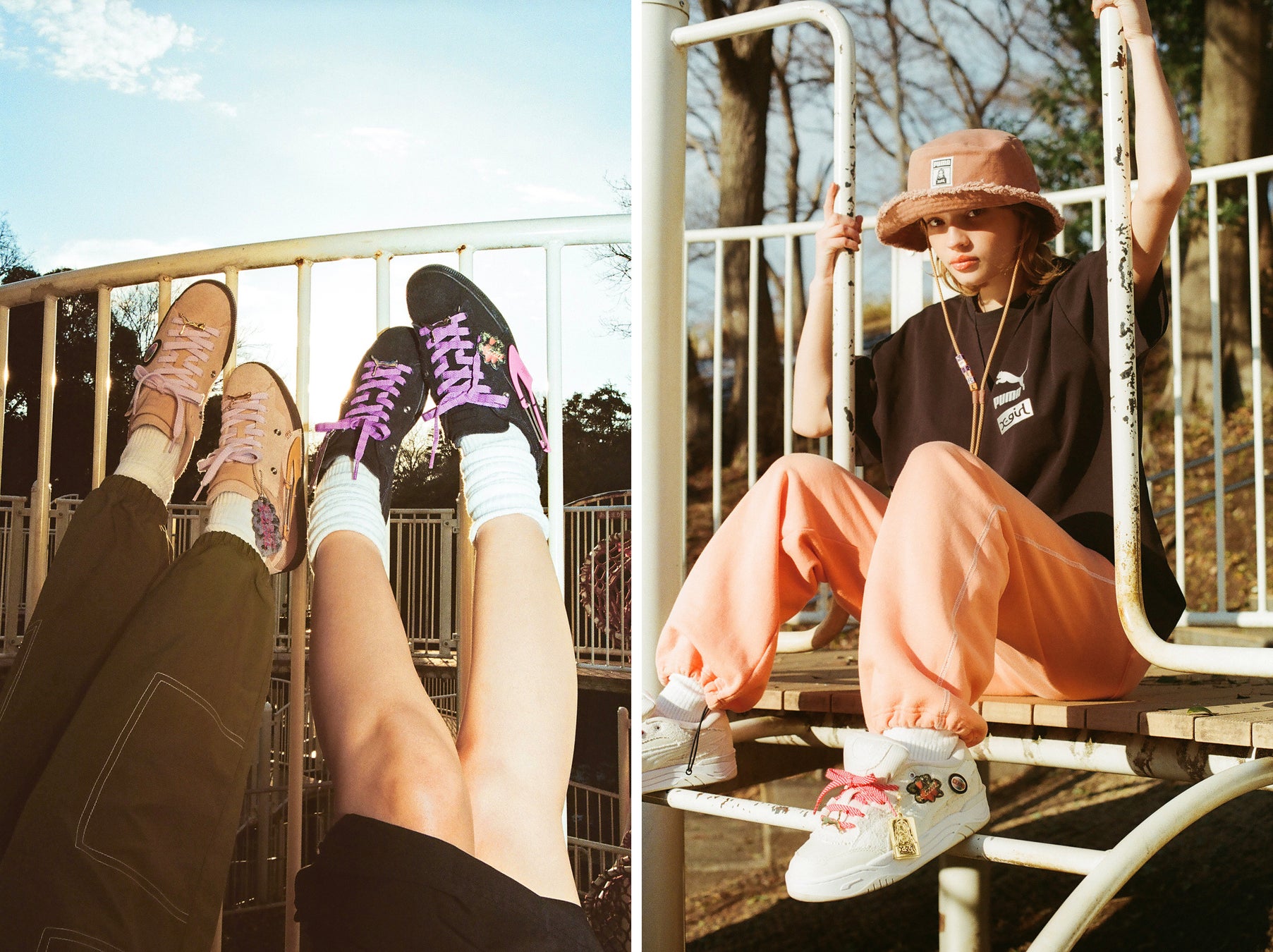 本コラボレーションは、クラシックなストリートスタイルにモダンでフェミニンな要素を加えてデザインされました。アグレッシブなグラフィティにインスパイアされたグラフィックが特徴のTシャツやスウェットフーディ、カスタマイズ可能なチャーム、スタッズ、カラビナ、シューレースを備えたスニーカーなど計8型を展開いたします。