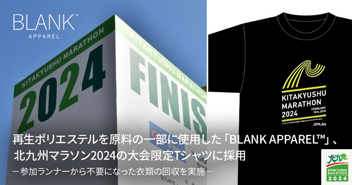 BLANK APPAREL™を運営するJEPLANは、北九州市若松区にて「服から服をつくる®」ケミカルリサイクルプラントを稼働しています。同市において、資源循環の取り組みを推進するべく、双方で連携の可能性を検討しておりました。この度、JEPLANが掲げる「あらゆるものを循環させる」という理念に賛同いただき、北九州マラソンとの協働が決定しました。大会限定Tシャツは100%繊維由来の再生ポリエステルを素材の一部に使用した「BLANK APPAREL™」をボディに使用して制作し、会場では参加ランナーから不要になった衣類の回収を実施しました。