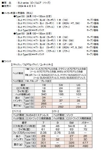 ブリヂストンスポーツ株式会社は、ゴルフクラブ「Bシリーズ」から新たにジュニア向けモデルのゴルフクラブ『B-Jrシリーズ』を4月5日に発売します。価格はすべてオープンです。