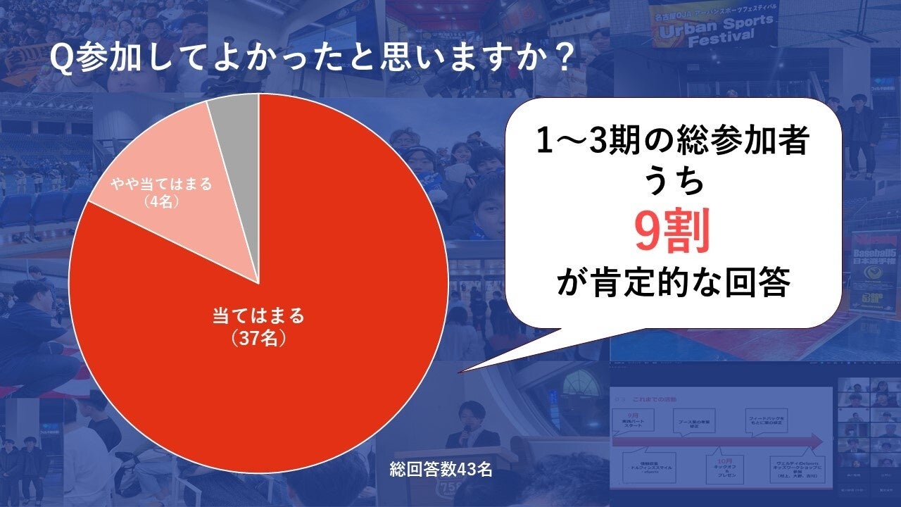◎2021年12月より開始したガチスポ一期生から三期生に対するアンケートでは、参加者の9割以上の人が「当てはまる」「やや当てはまる」と肯定的な回答をしました。一期から規模も拡大し、非常に充実したプログラムとなりました。