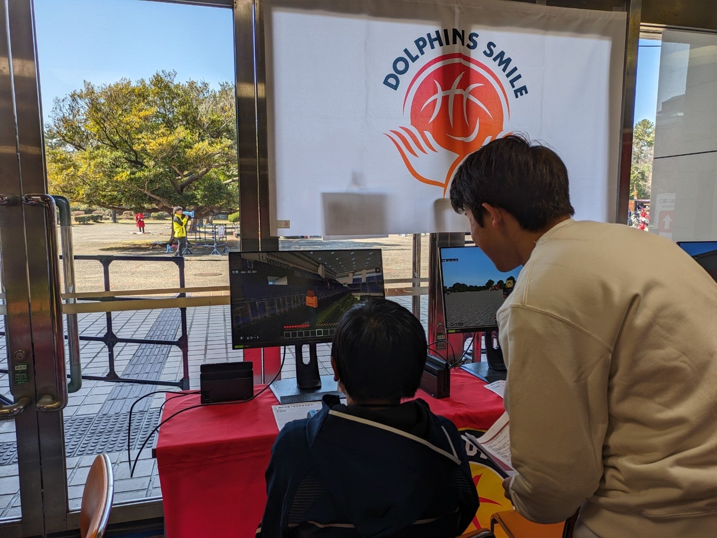 当日は、多くのお客さんがゲームを使用したドルフィンズアリーナからの避難訓練を体験して、とても大盛況でした。