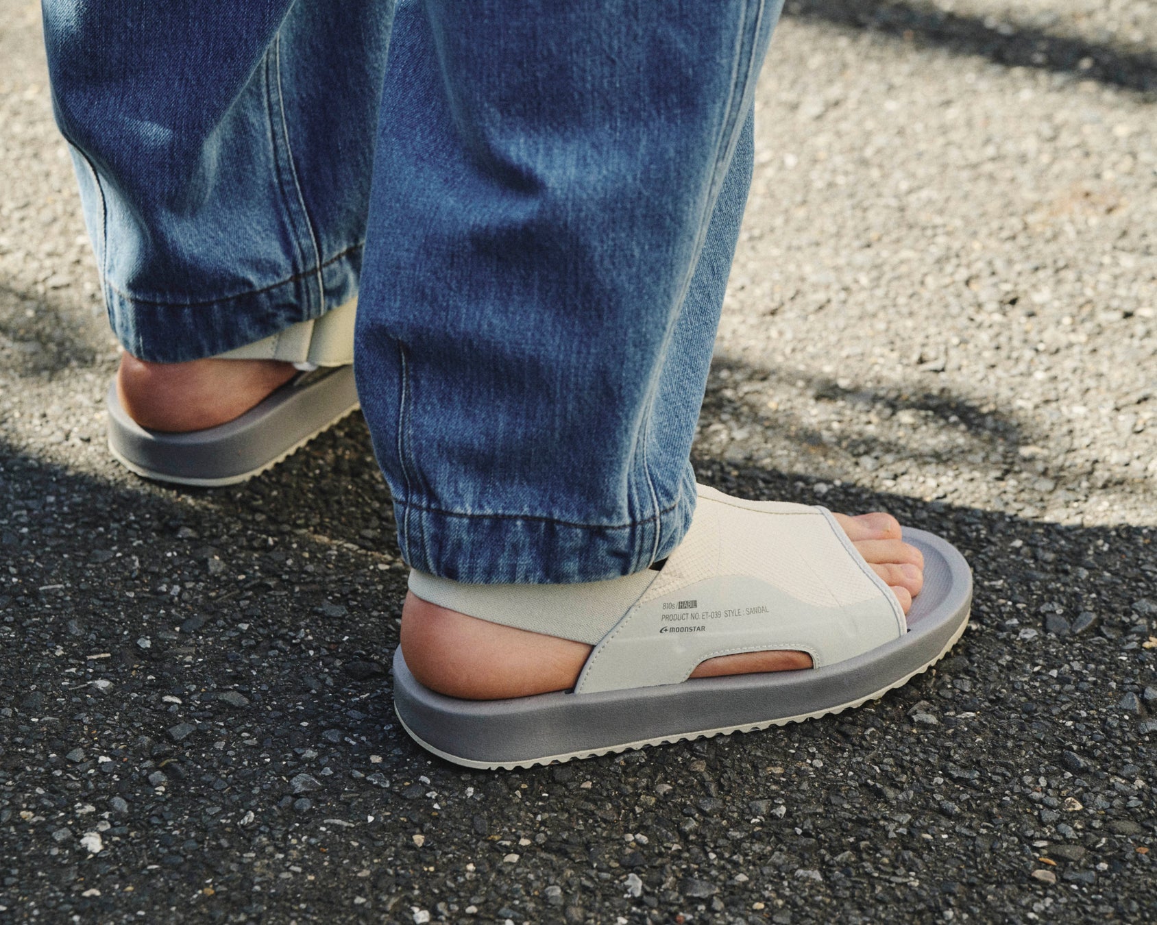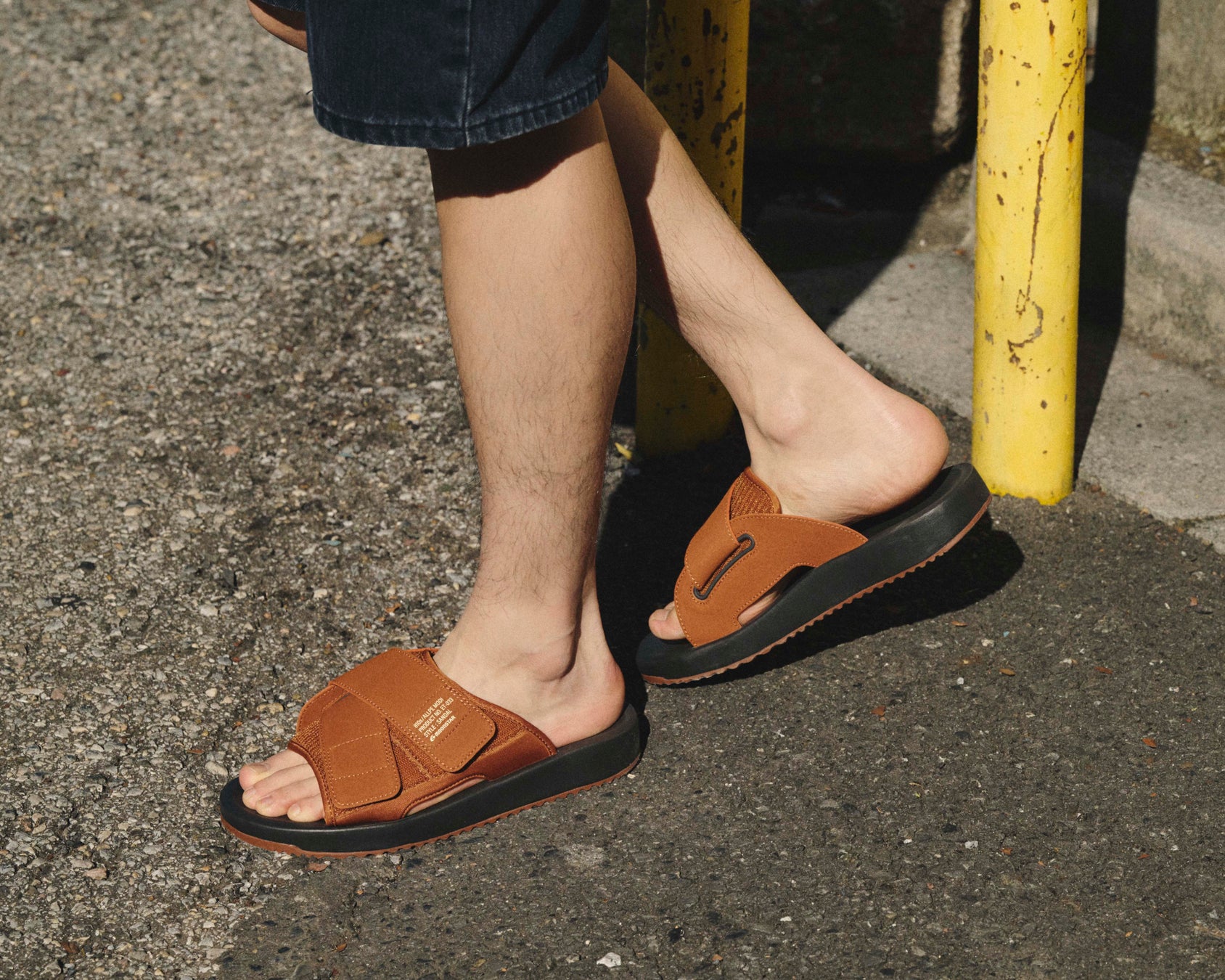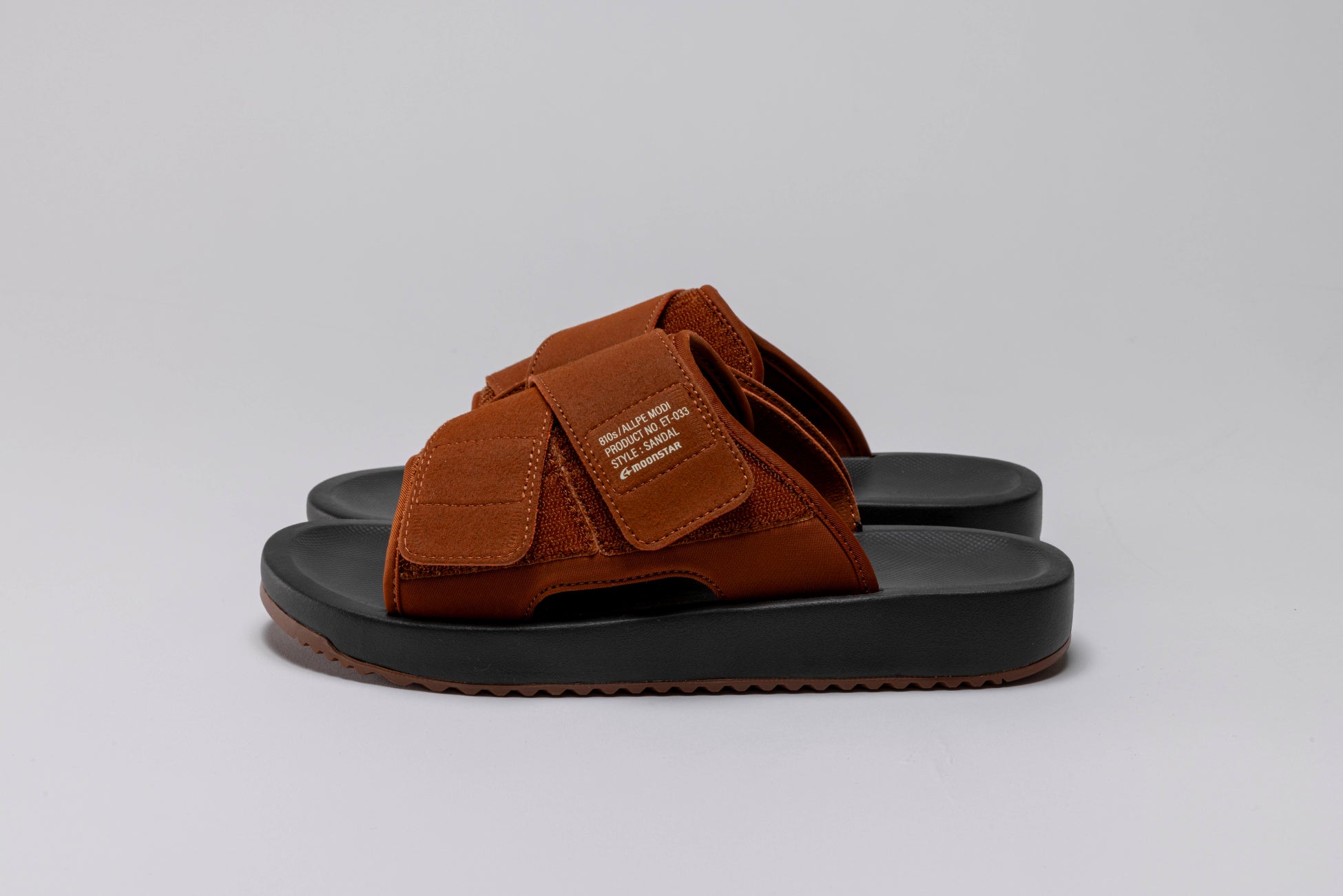 今シーズンのALLPE MODI は現行のBLACK 、IVORYとは異なり、アッパーとソールにトーン差を持たせたバイカラーで提案。ミリタリーサンダルをカラーイメージとしたBRICKはデイリーユースはもちろん、アウトドアシーンにもマッチする一足です。