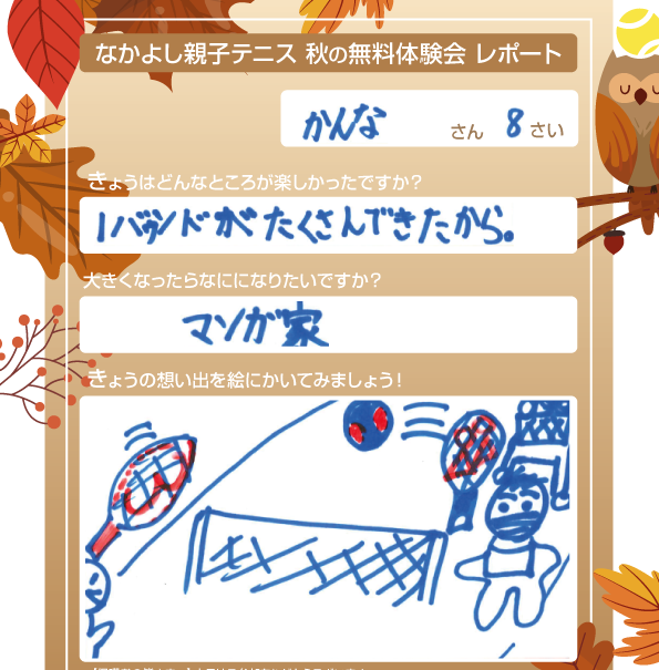 地域の皆様に長年支えていただいている感謝を込めて、親子のきずなが深められるなかよし親子テニス体験会を、これからも続けていきます。