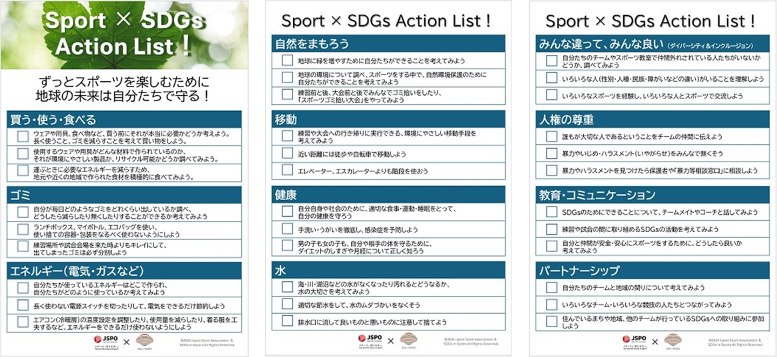 このたび、JSPOと一般社団法人SDGs in Sports(https://sports-sdgs.org/)が連携し、スポーツ指導の現場で活用できる『Sport×SDGs Action List!』を作成しました。