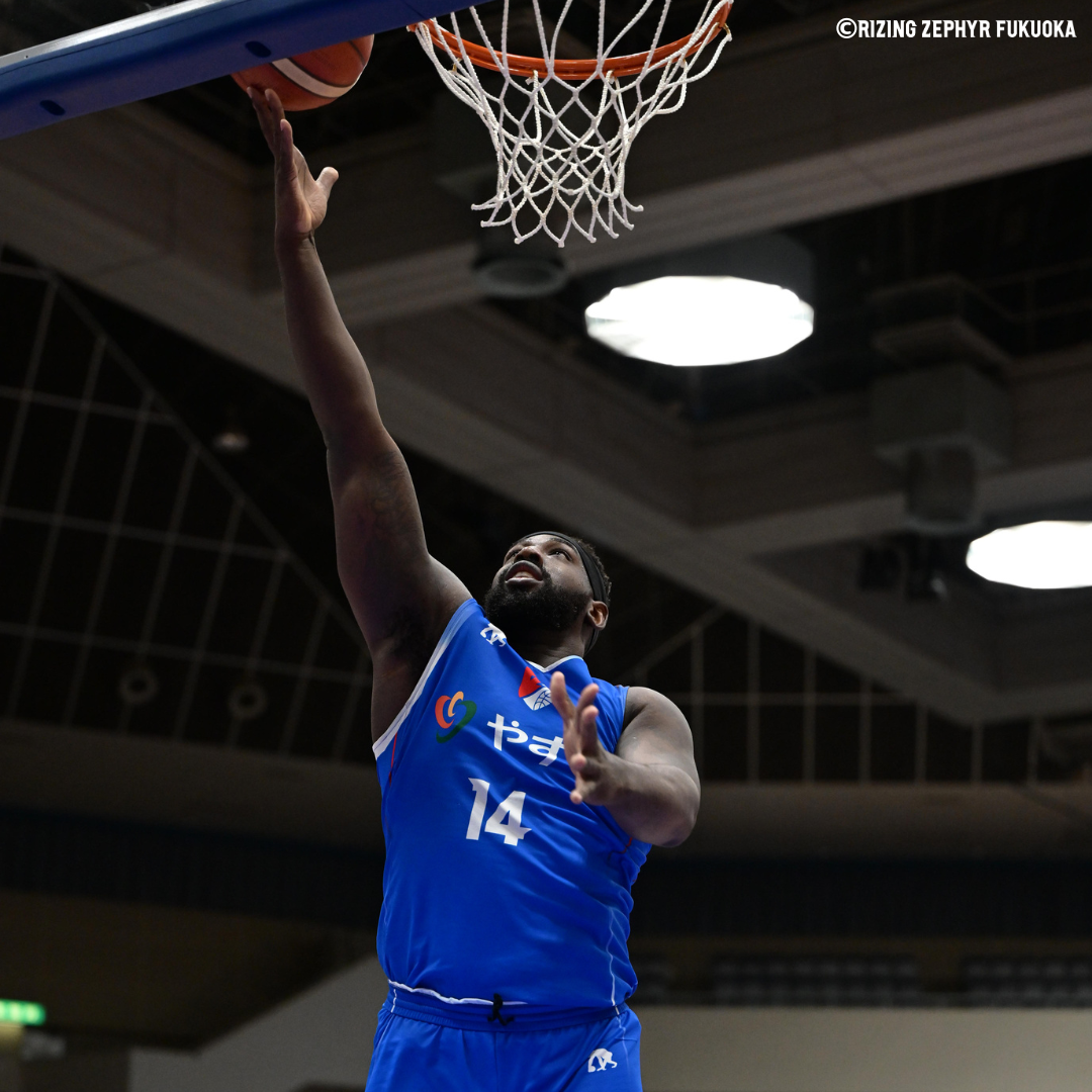 GAME1と変わらないスタートで挑む福岡は、#14ギャビンのインサイド、#24谷口の3Pシュートで繋げていくも、滋賀のビッグラインナップにインサイドを攻め込まれ、ビハインドの展開で試合が進む。途中出場の#5ブライスがジャンパーを成功させると、ディフェンスから#33加藤がファストブレイクに繋げる。2Qに入ってもブライスがジャンパーや早い段階で滋賀のチームファールが5つを超え、フリースローで得点を重ね、ジワジワと滋賀に詰め寄る。しかし、滋賀に#12ブロック・モータム選手を中心とした高確率なオフェンスを組み立てられ、10点をビハインドし前半を終える。
