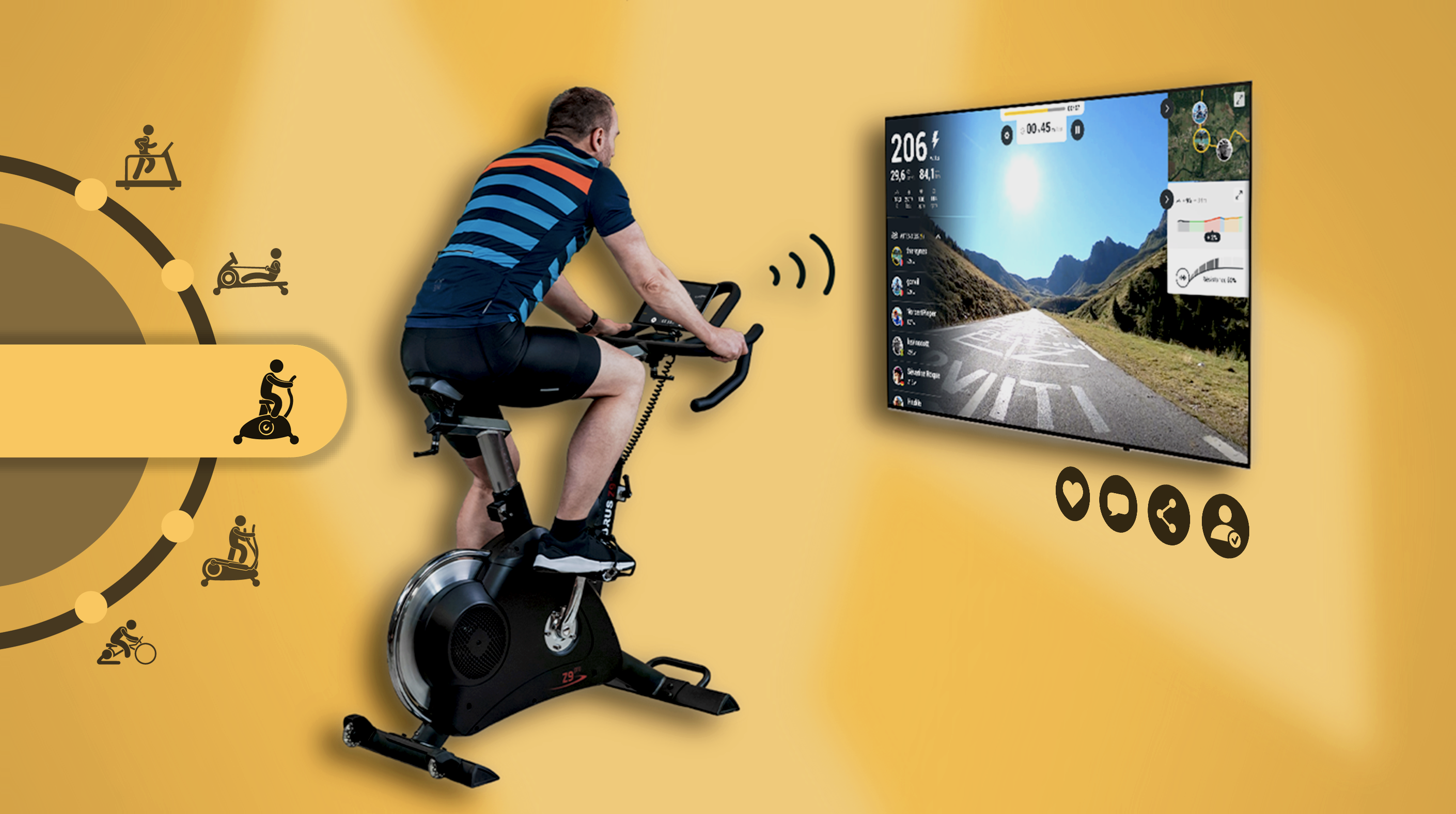 エアロバイク、ホームトレーナー、トレッドミル、エリプティカル、ローイング マシンと互換性があり、世界中の何千ものルートを持つ最大のジオロケーション(GPSデータ)ビデオ共有プラットフォームへのアクセスを提供します。これらのビデオに記録されたGPSデータをアプリにシンクロさせることにより、傾斜・スピードを忠実に再現、リアリティのある「在宅トレーニング」を可能にします。