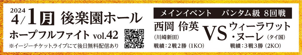 ※イベント詳細・チケット販売HP:http://nittagym.com/2024/02/18/hopefulfight42/