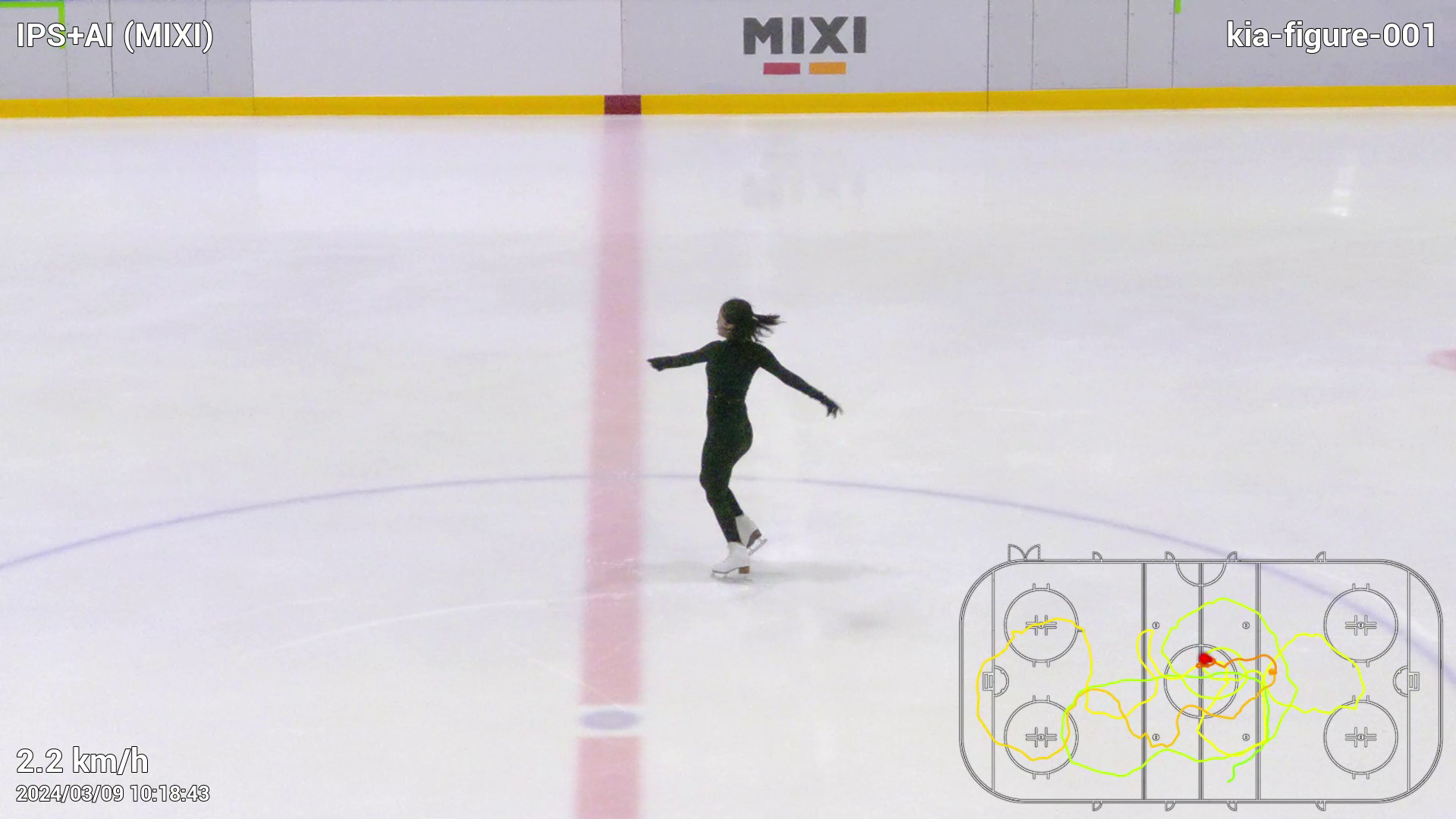 演技の様子を自分たちで撮影することも可能ですが、それと比較しても本システムは追尾精度が高く、画質も非常に良いです。選手をズームし、かつ真上からの俯瞰撮影がされていることから、より自身の演技を確認しやすくなっているのも良いポイントです。また、このシステムは移動軌跡を確認できるため、スケートリンク全体をどの程度使えているかがすぐに分かります。滑走時のスピードも数値で確認できるため、特に演技後半でスピードが不足していないかなどの把握にも活用できます。録画動画をすぐに見返したり動画を持ち帰ったりして復習し、自身の演技に反映しています。