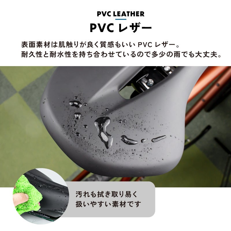 ショートサドルならではのスマートな形状で自転車全体の印象を引き締めます。
