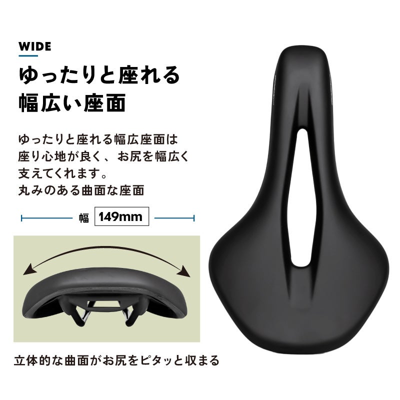 座り面は丸い曲面デザインでお尻をピタッとサドルと一体化するよいになっています。