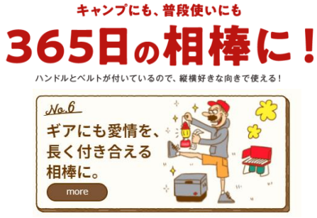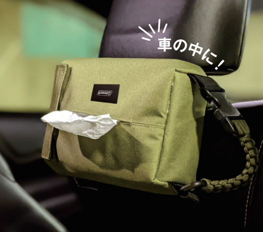 10,000円(税込)以上お買い上げのお客様に“365相棒ティッシュケース”を合計10,000名様にプレゼントします。ハンドルとベルトがついているので縦横好きな向きで使えるのでテーブルの脚に着ければスッキリして“スぺパ”のよいアイテムです。キャンプ中はもちろんのこと、車の中など普段使いで365日の相棒にしてください。