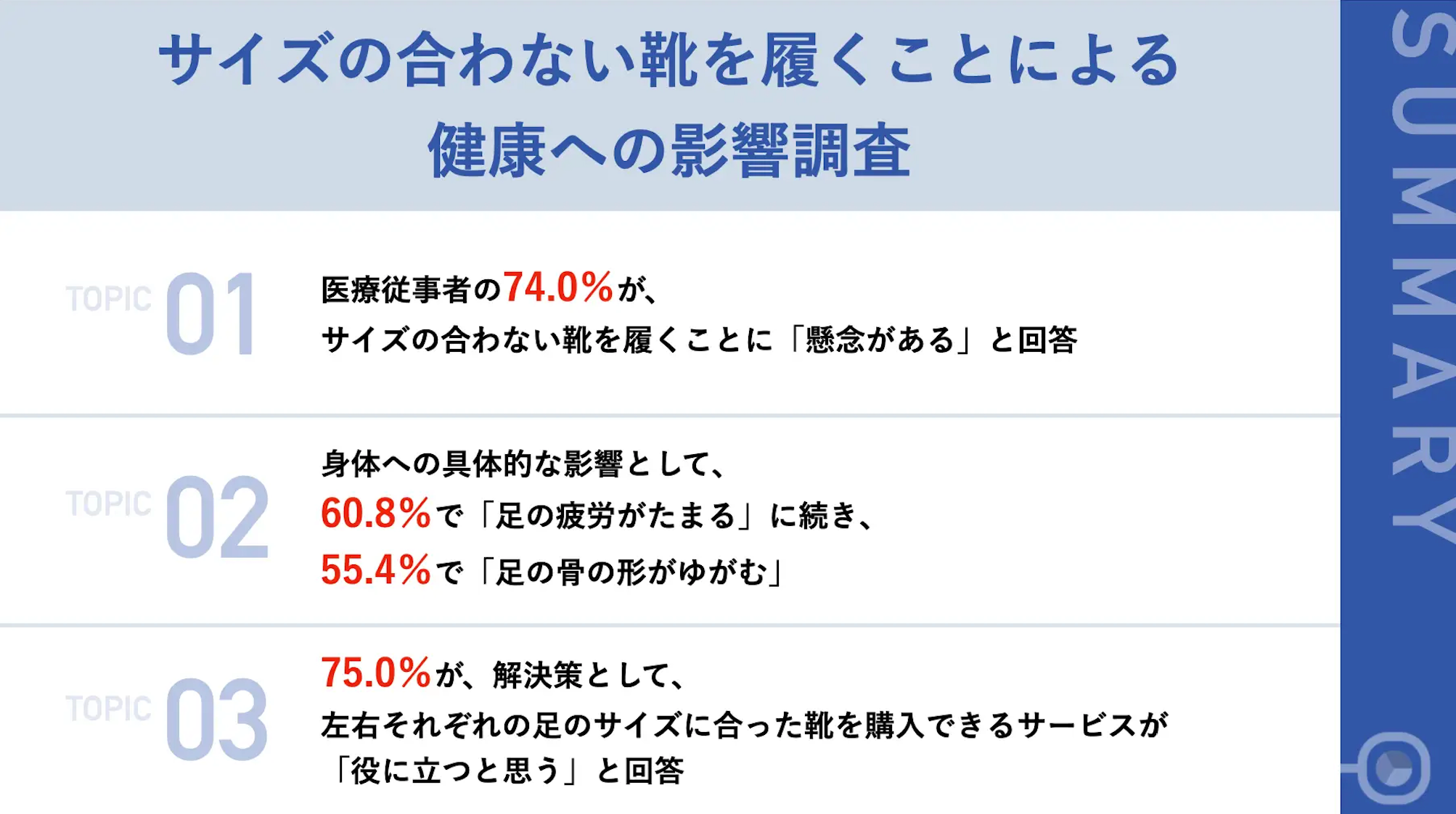 (※)医療従事者の74%がサイズの合わない靴を履くことによる悪影響を懸念。医療従事者100名を対象に独自調査