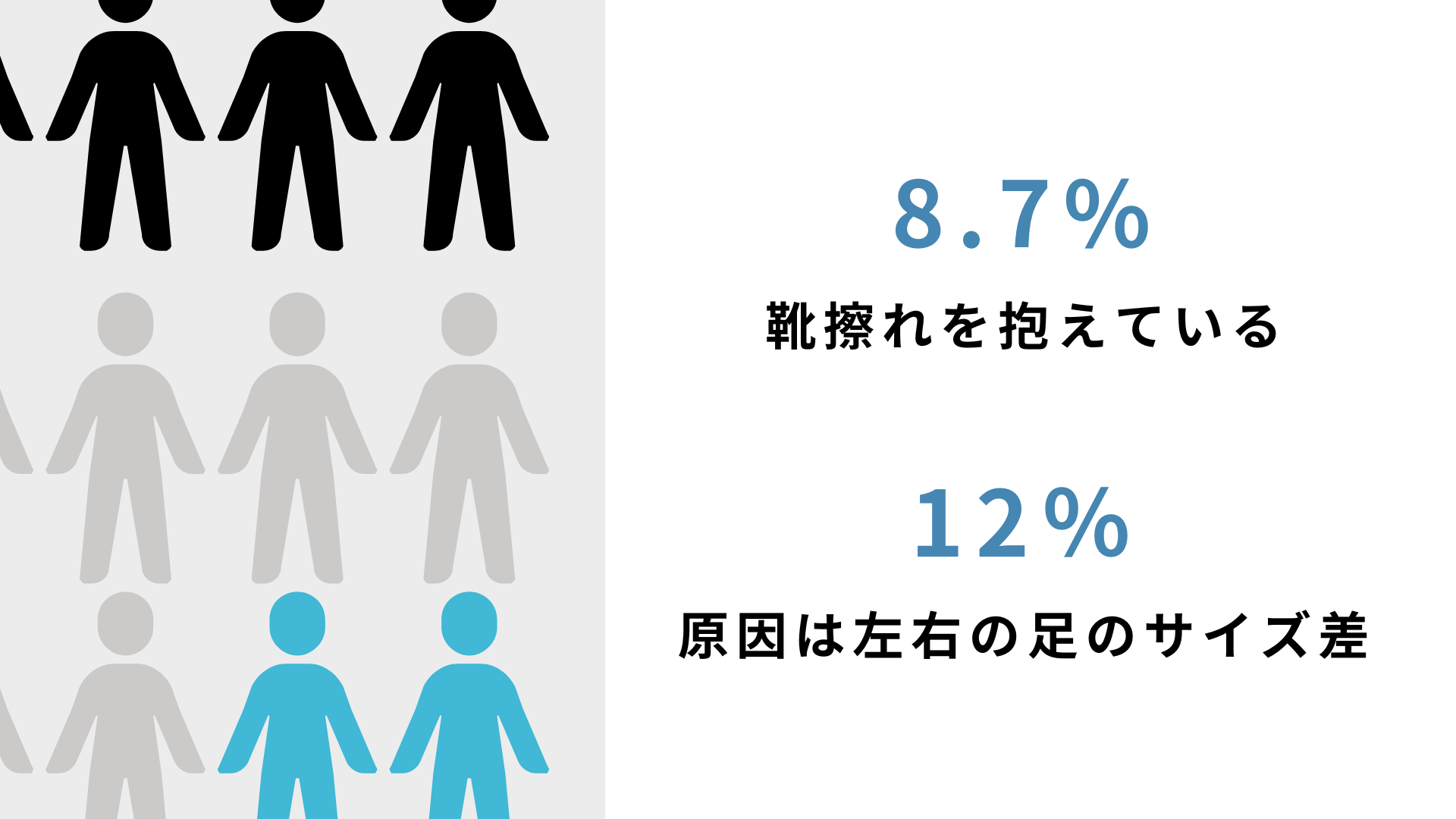 靴擦れの症状を抱える人の1割超が「原因は足のサイズの左右差」と回答
