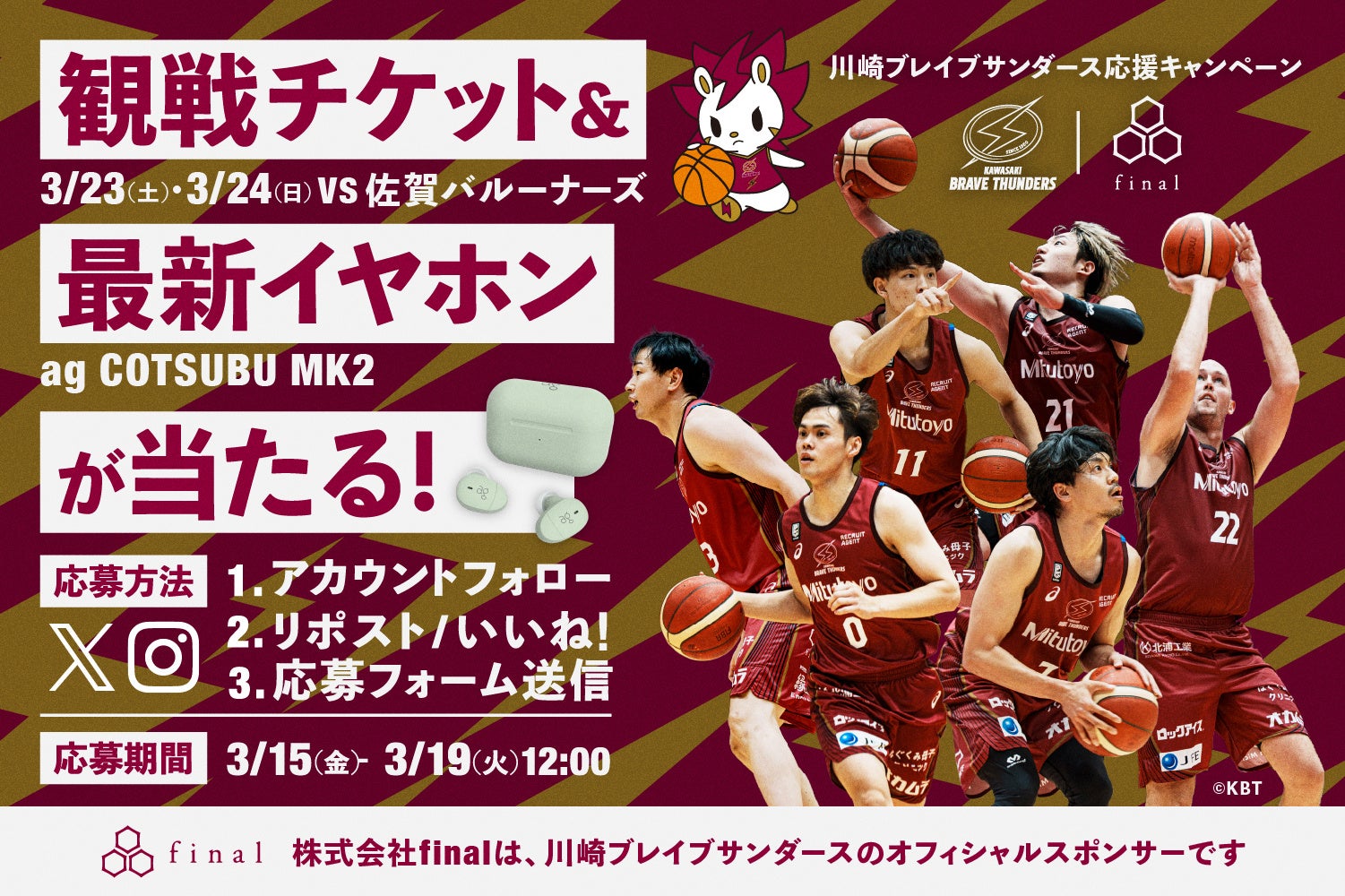 川崎を拠点とするfinalと川崎ブレイブサンダースは、音楽とスポーツの力で多くの人を勇気づけ、川崎から日本を元気にしていきたいという思いから2022-23シーズンに初めてオフィシャルスポンサー契約を締結いたしました。