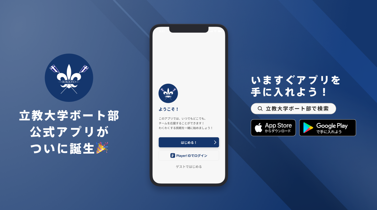 私たち現役部員は、指導陣、OB・OG会によるサポート、そして学校関係者の皆様、保護者の皆様、スポンサーの皆様、その他立教大学ボート部を応援して頂いております皆様方と共に、「チーム立教」として活動しております。公式アプリ導入による情報発信強化はチーム立教の新たなチャレンジになります。この取り組みが、ローイング競技の魅力を伝えること、そして「皆から愛される立教大学ボート部」の実現に近づくと考えております。まずはアプリをダウンロードしていただき、チーム立教として一緒に活動できると嬉しいです。応援の方どうぞよろしくお願いいたします。
